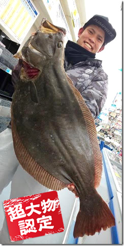 ヒラメ 95cm・6.5kg(口閉じ尾開きで91cm)