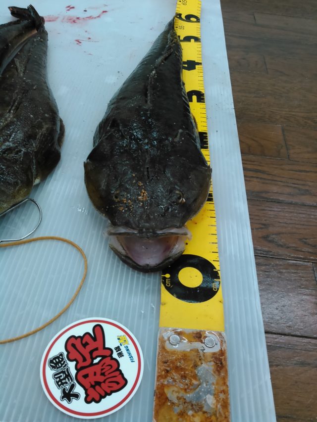 マゴチ持ち込み時、〆てあったので59センチ、釣った直後は61センチでいた。他にも大型のマゴチやシタビラメなど釣果アリ!!