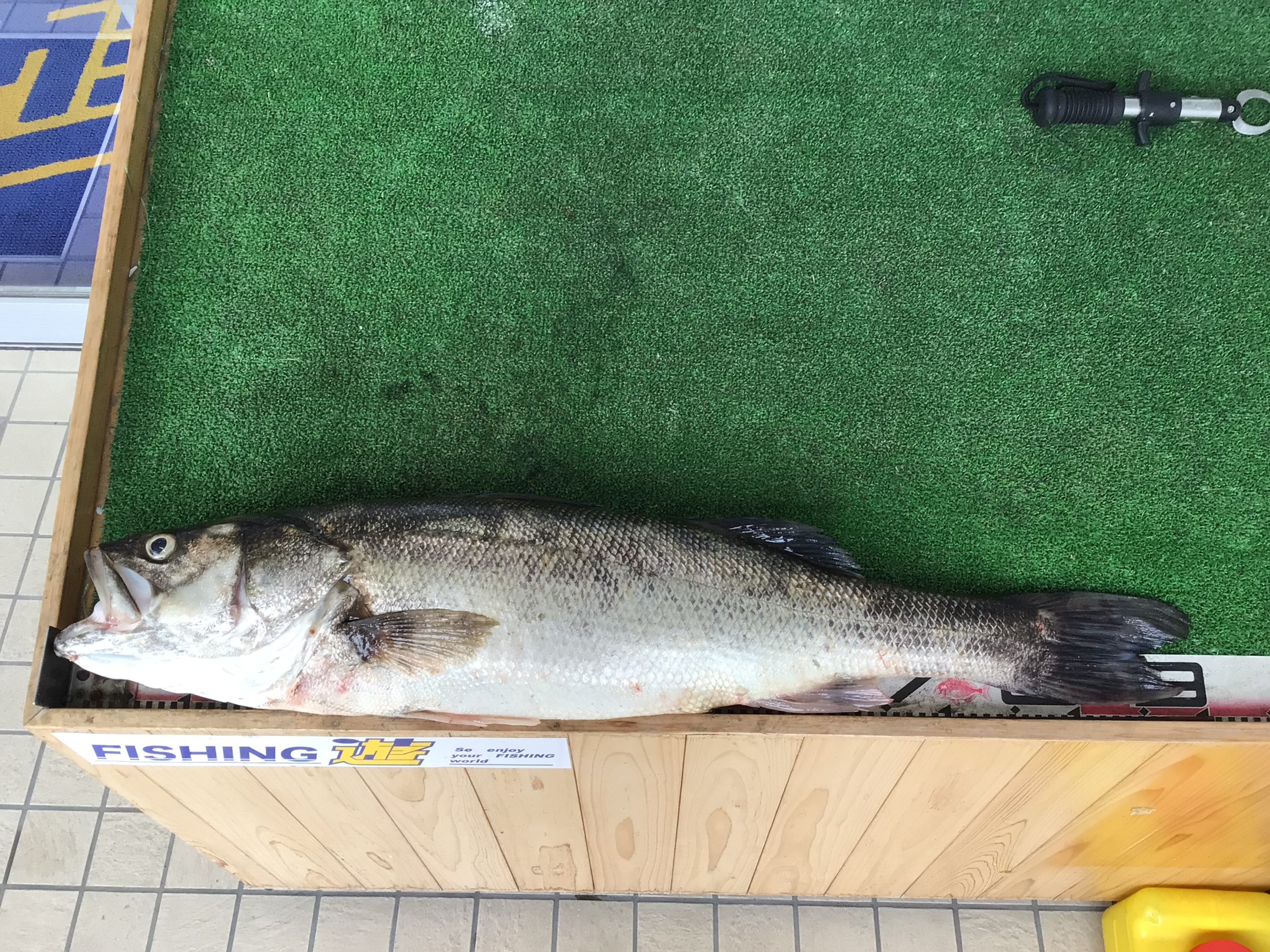 シーバスの持ち込み頂きました。超大物の91cm!!(持ち込まれた時は縮んでも89.5cmでした)