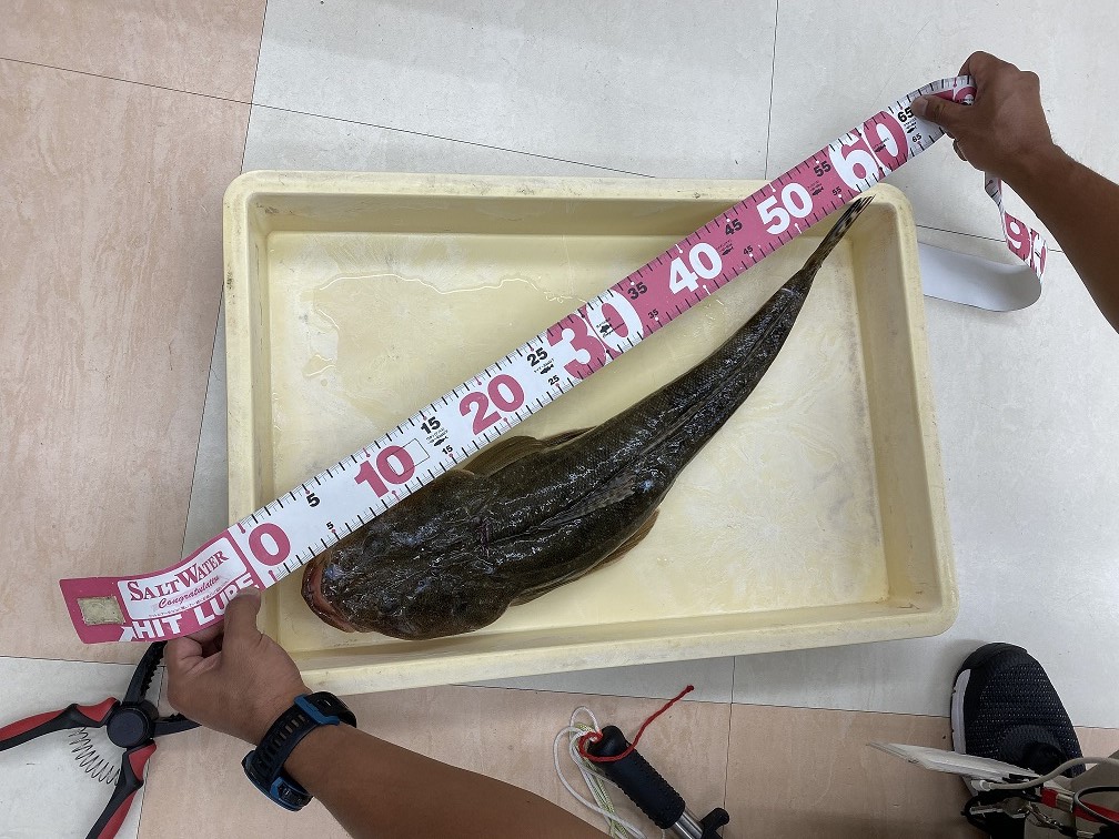 当店お客様 肥田様が日本海ショアジギングで1投目で55cmオーバーの大型マゴチをキャッチされました。