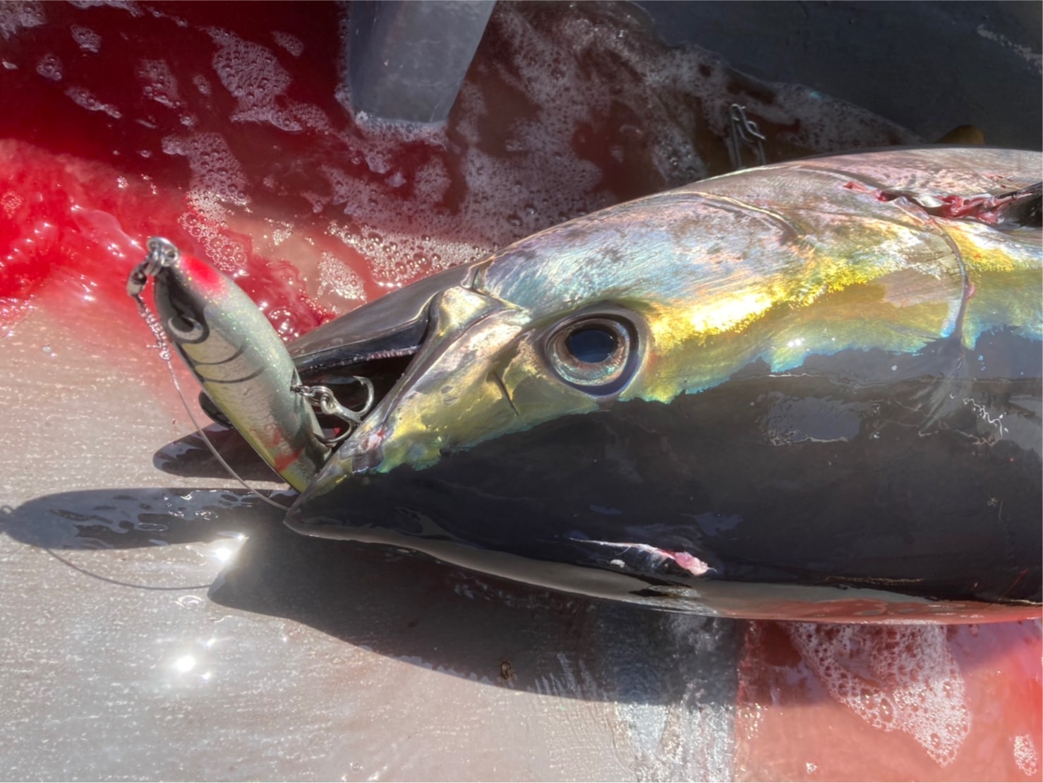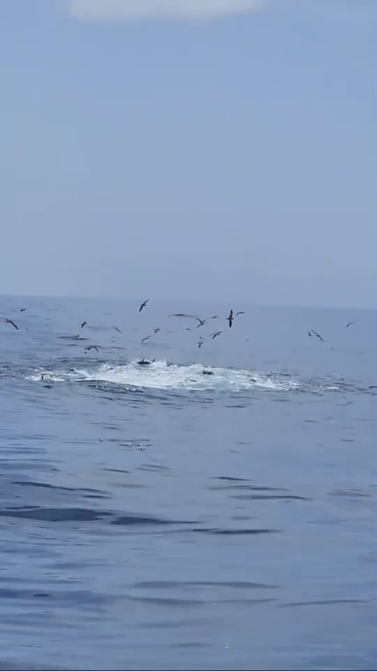 その後スーパーナブラが発生!海面がジャクジー状態!ベイトボールが形成されキハダが跳ねまくっています!大チャンス!·····でしたがモノに出来ず··!悔しい!