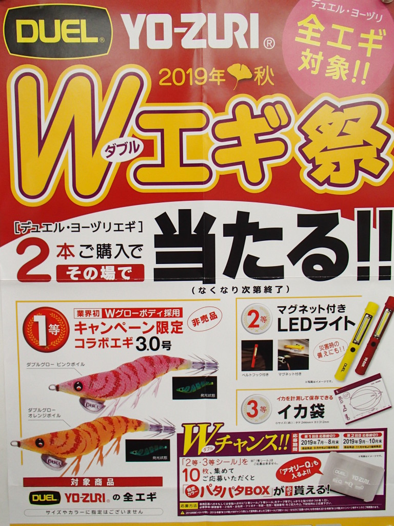 デュエル(ヨーズリ)さんのエギを2本お買上げごとに、その場でハズレ無しのクジを引いていただけます!