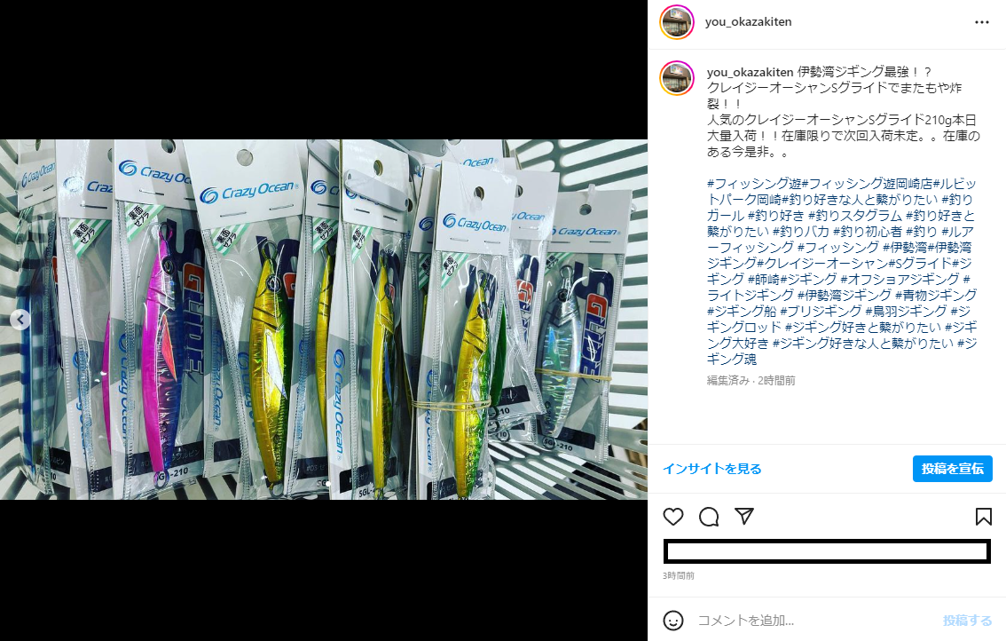 人気のクレイジーオーシャンSグライド210g本日大量入荷しました!!!