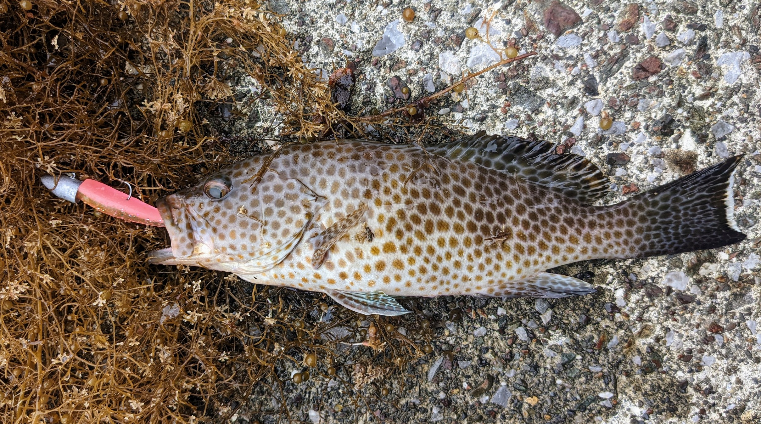 ソルトのオカッパリで言うと夏はややオフシーズン。バチパターン、ハクパターンもひと息ついてシーバスがイマイチ、アオリも秋までひと休み、チヌ、マゴチくらいしか遊んでくれない中、真夏のメインターゲットにいきなり登場してきたのがハタゲーム!
