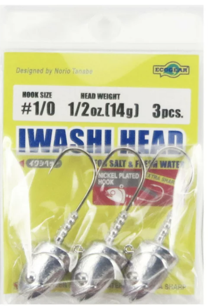 エコギアのイワシヘッドがフックが強く、まあまあリーズナブルでオススメ。僕が良く使っているのは7〜11グラムです。