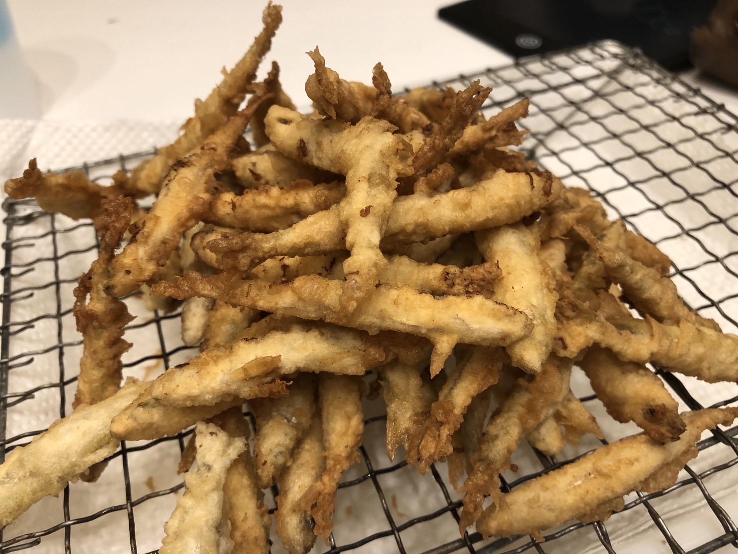釣ったワカサギはお父さんが天ぷらにしてくれたみたいで