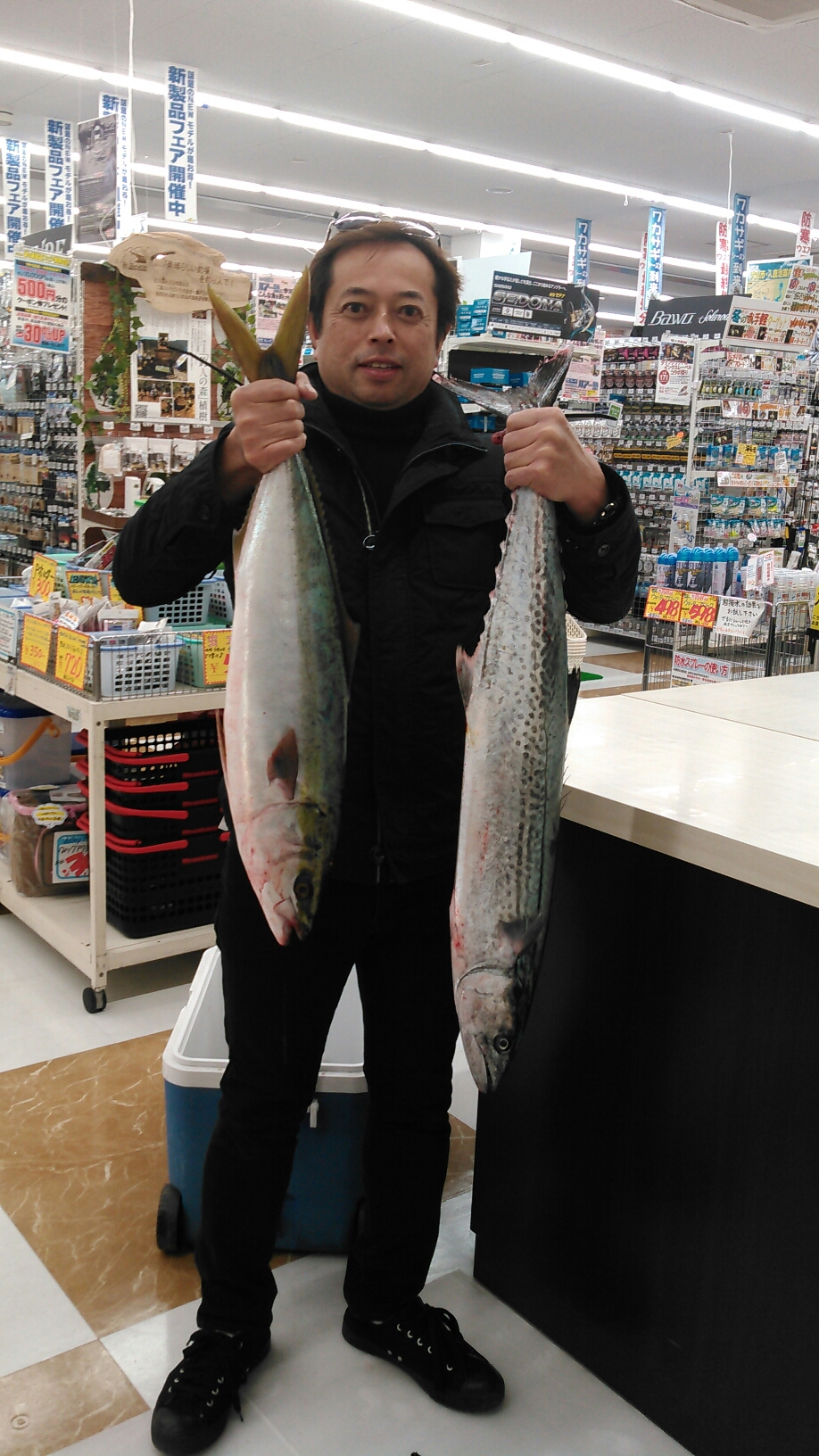 2018.01.31中野様より伊良湖沖のイワシの泳がせでサワラ95㌢とワラサが釣れ昨日持ち込まれました。