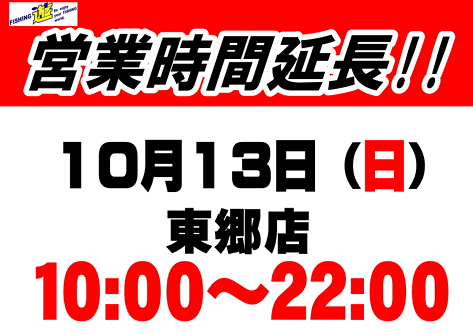 今週の10月13日は22時まで営業しています!!