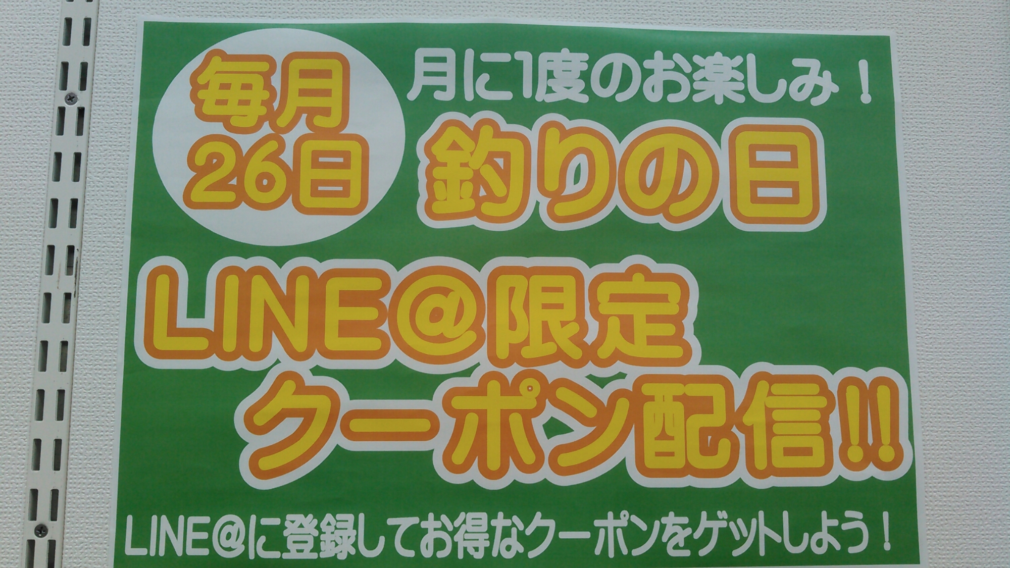 LINE@に登録されているお客様には既にクーポンのお知らせが届いておりますが、26日に配信しました。