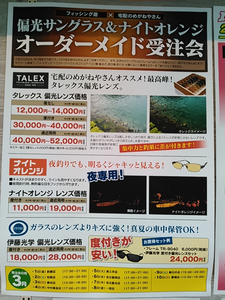3月4日(月)17時~21時 偏光サングラス&ナイトオレンジ オーダーメイド受注会