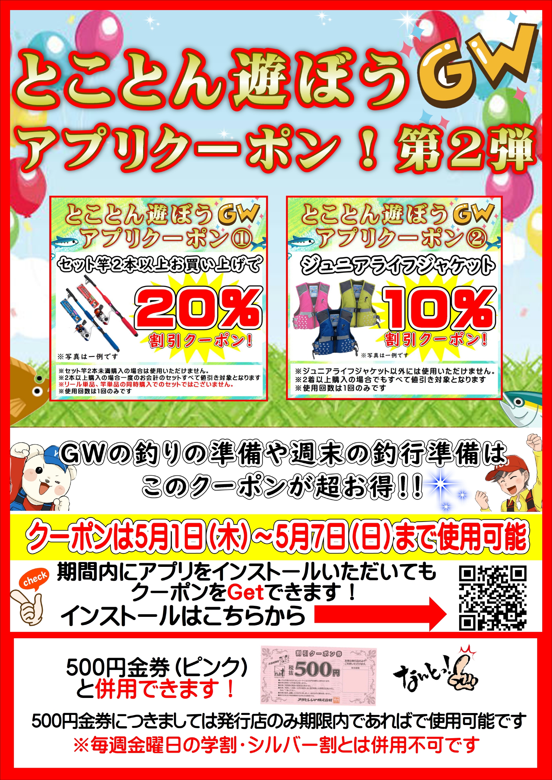只今、フィッシング遊のアプリでクーポンを配信中です!