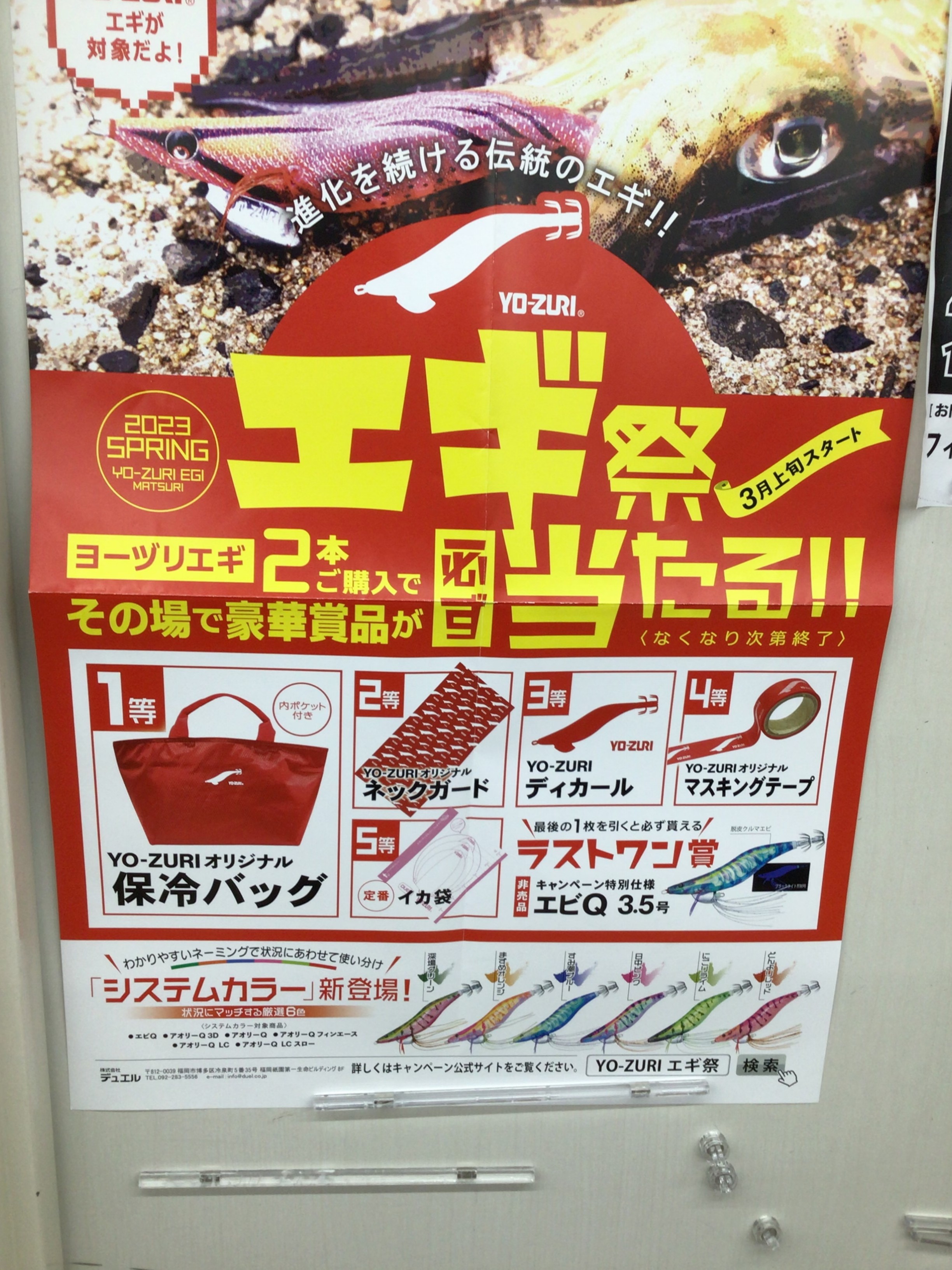 デュエル、ヨーズリのエギを2個購入して頂くとくじにチャレンジして頂きます!