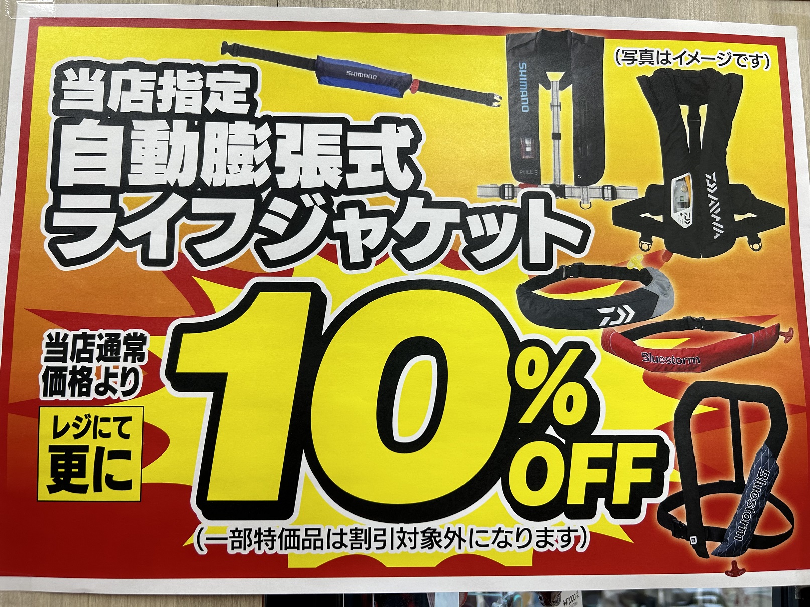 当店指定自動膨張ライフジャケットが10%OFF‼
