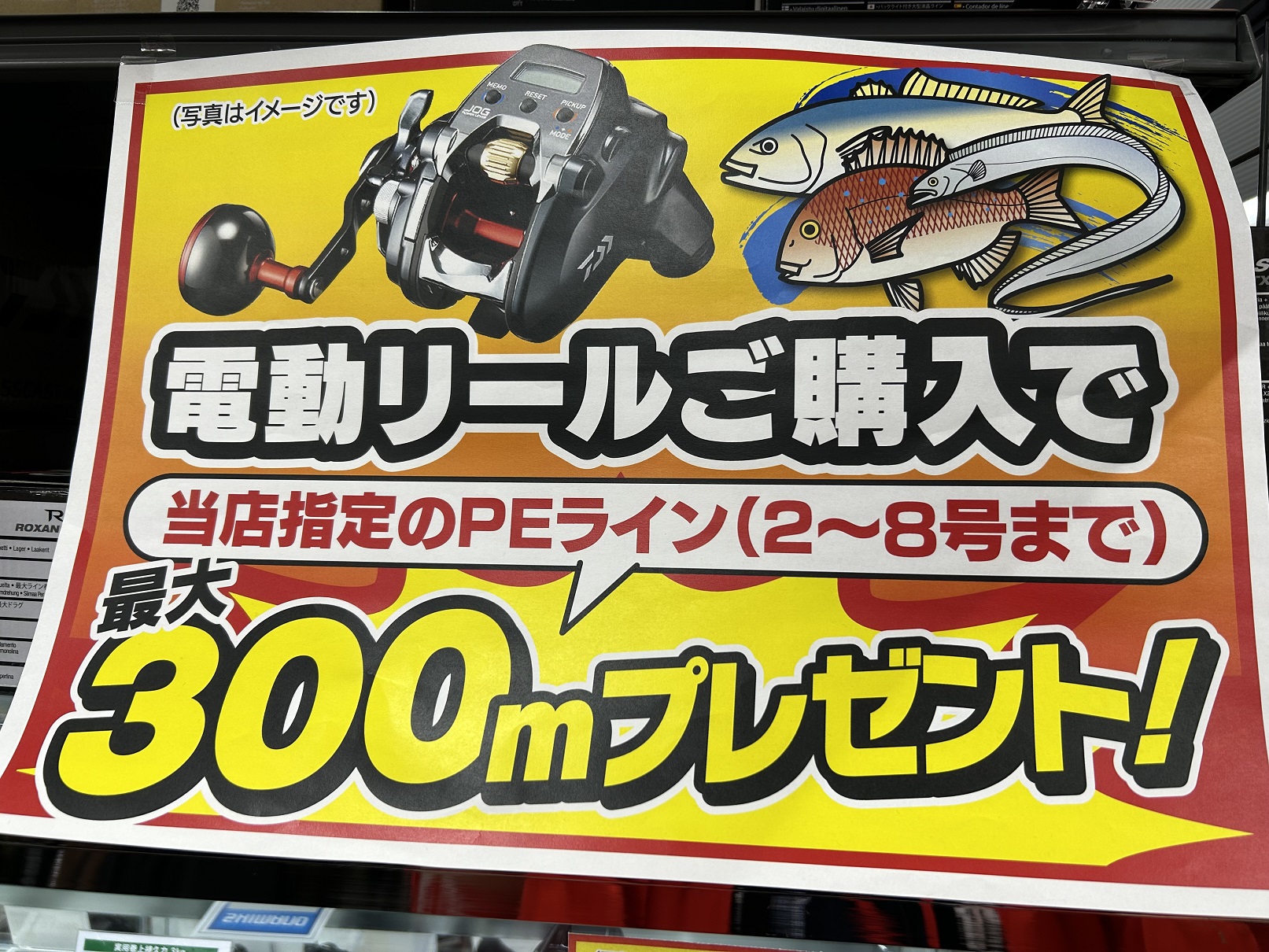 電動リールをご購入のお客様には当店指定PEライン(2~8号まで)300mプレゼント中です。