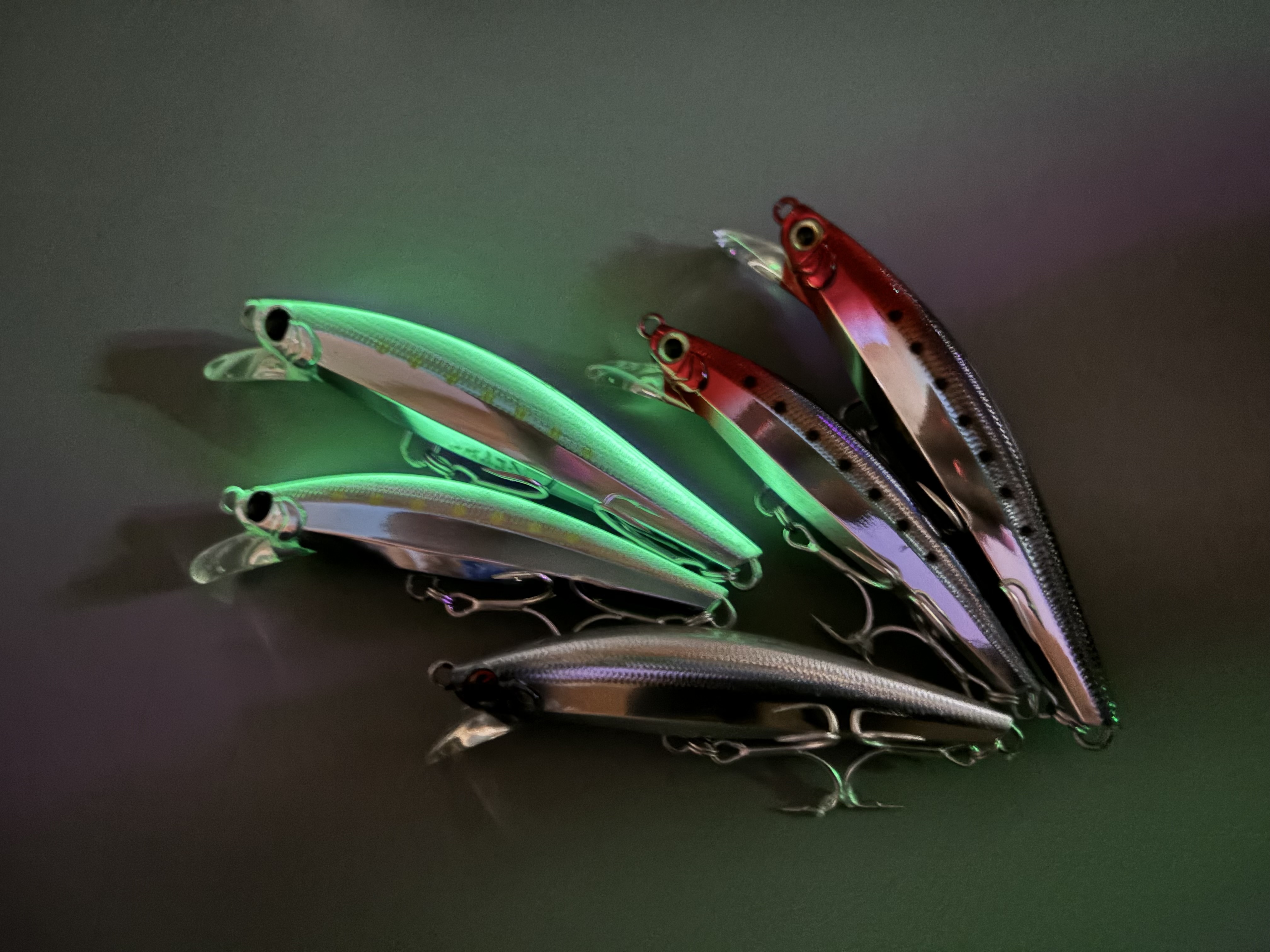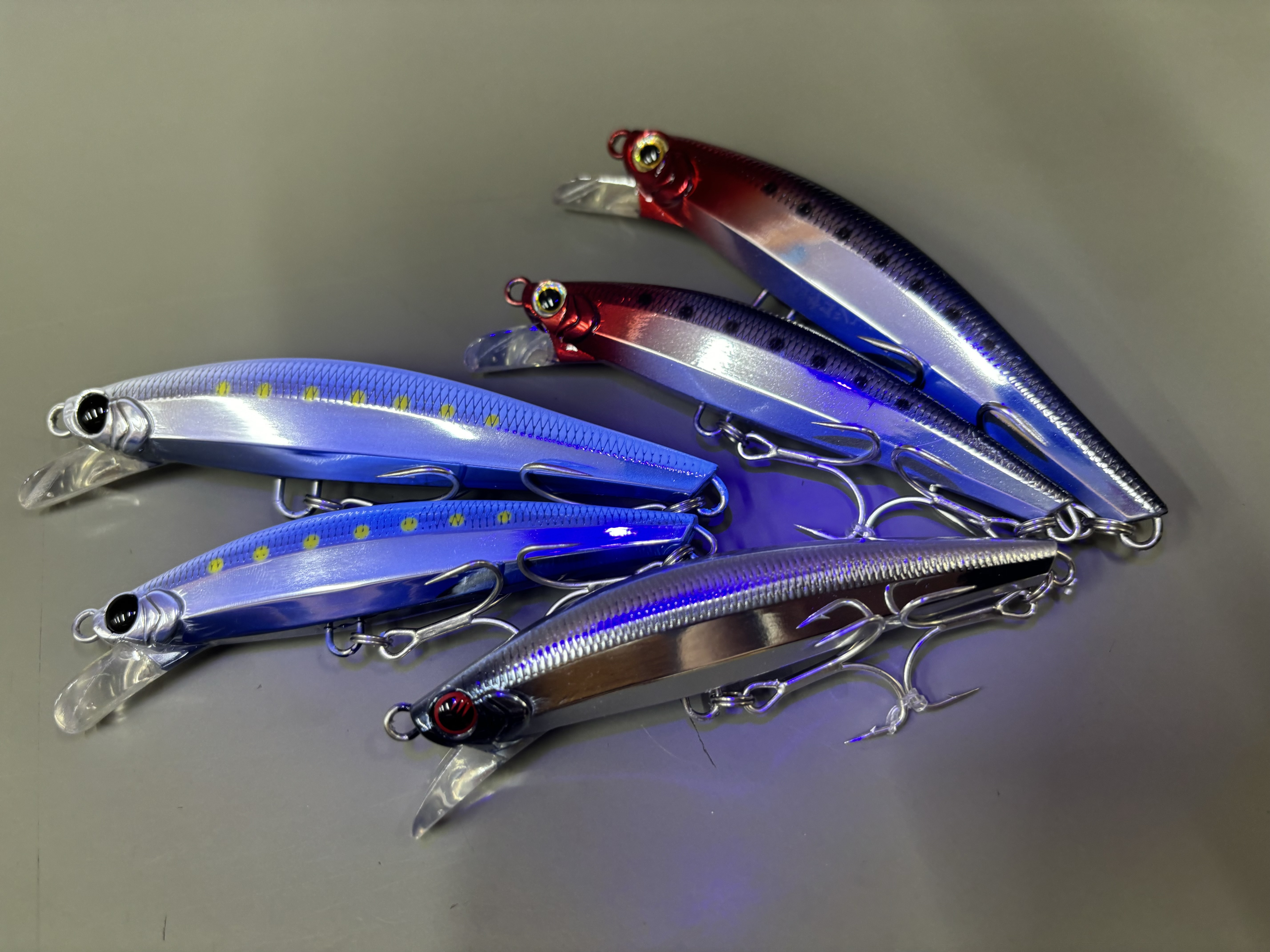 どちらもボディはケイムラ発光(真ん中は比較用のサゴシのエサカラー)