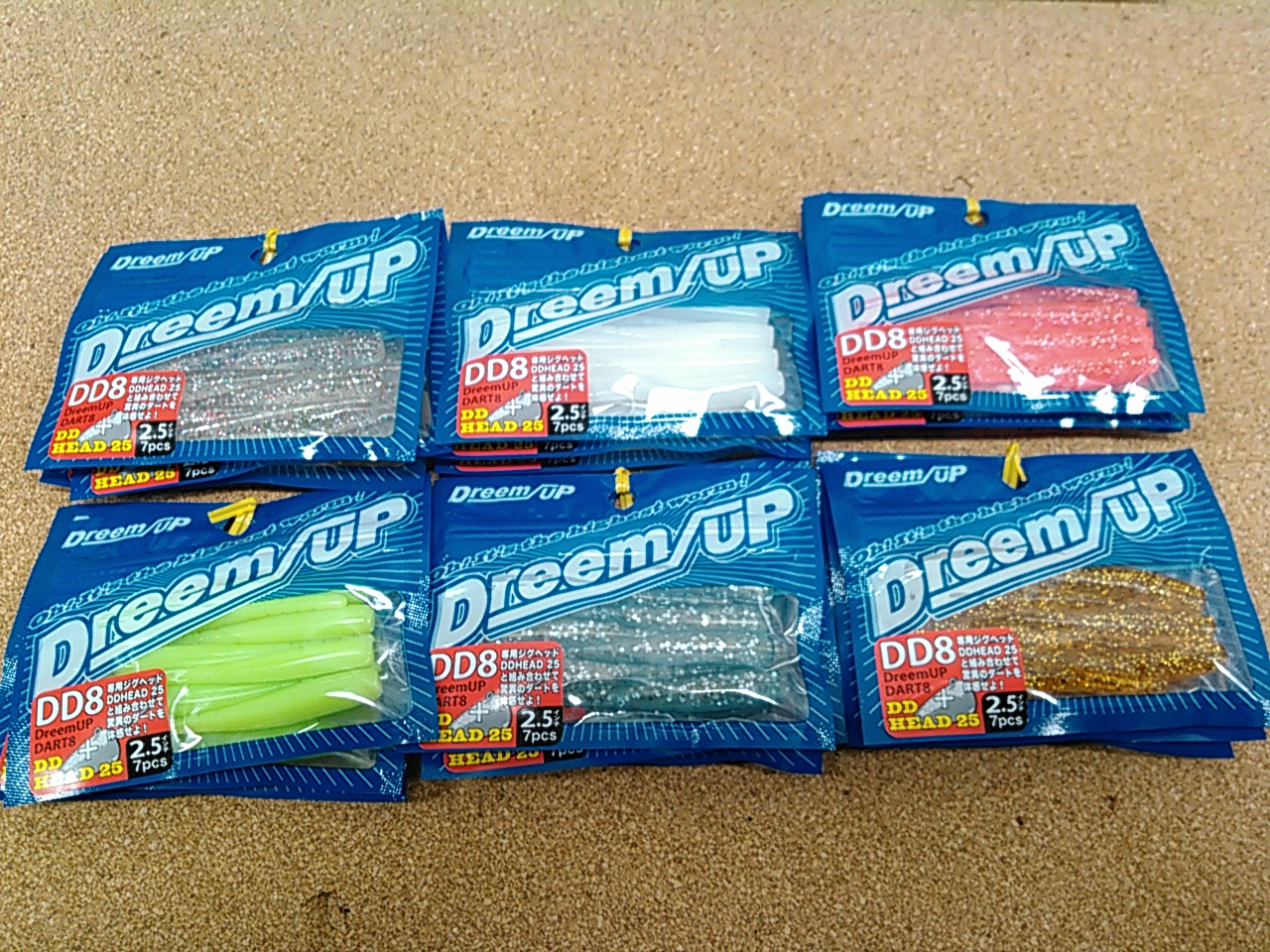 問い合わせの多かったドリームアップのDD8の2.5インチ入荷しました、喰い渋るボートのサゴシゲームやボトムのマゴチゲームで人気ですがもちろん根魚やカマスにも効果大です!