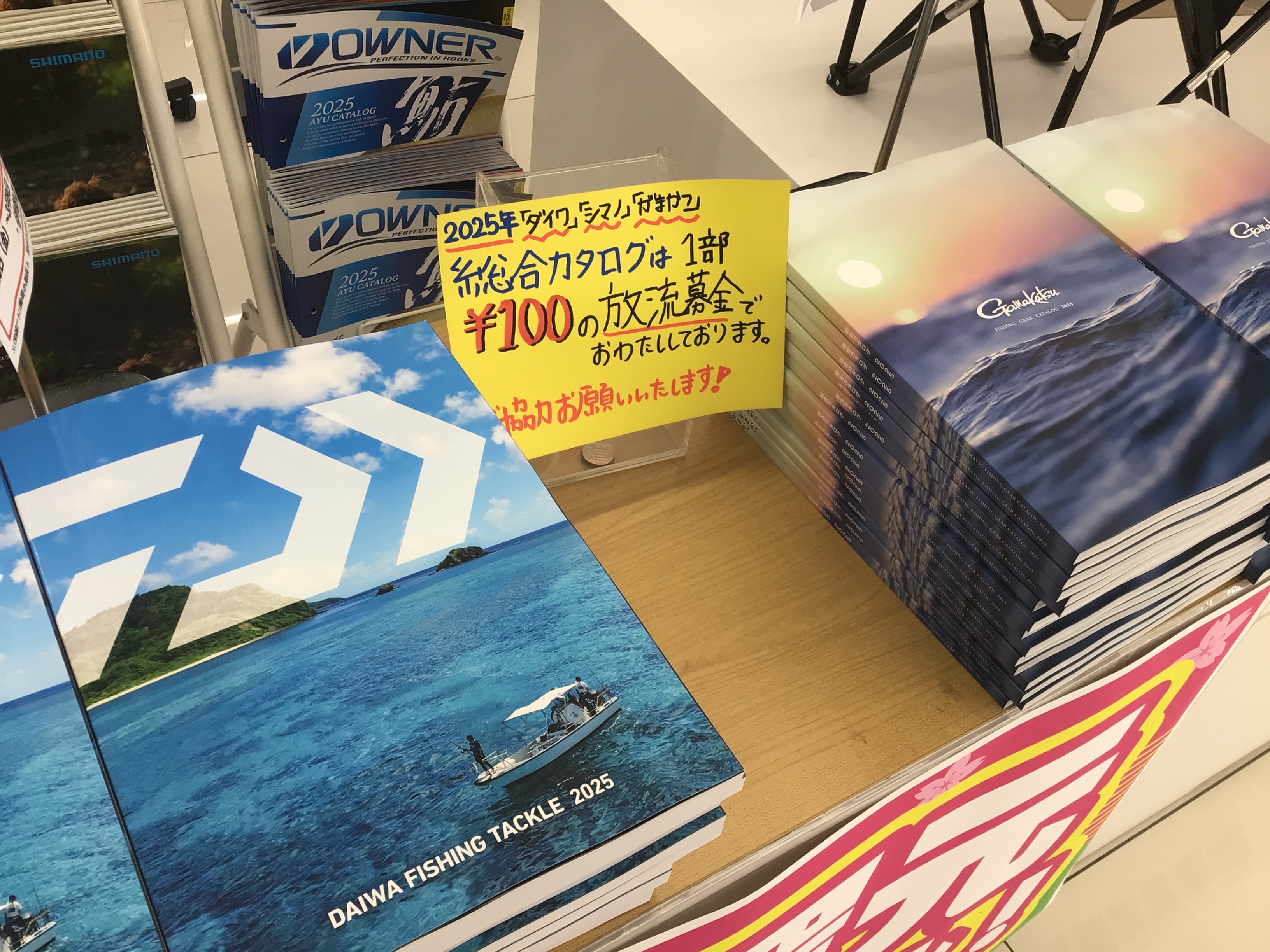 総合カタログは1部100円の放流募金でお渡しさせていただいております。