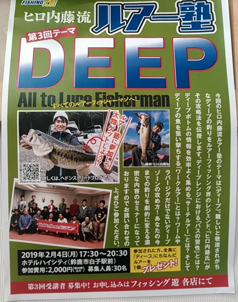 ルアーフィッシング界のレジェンド、ヒロ内藤氏のルアー塾が来年2月に開催されます。