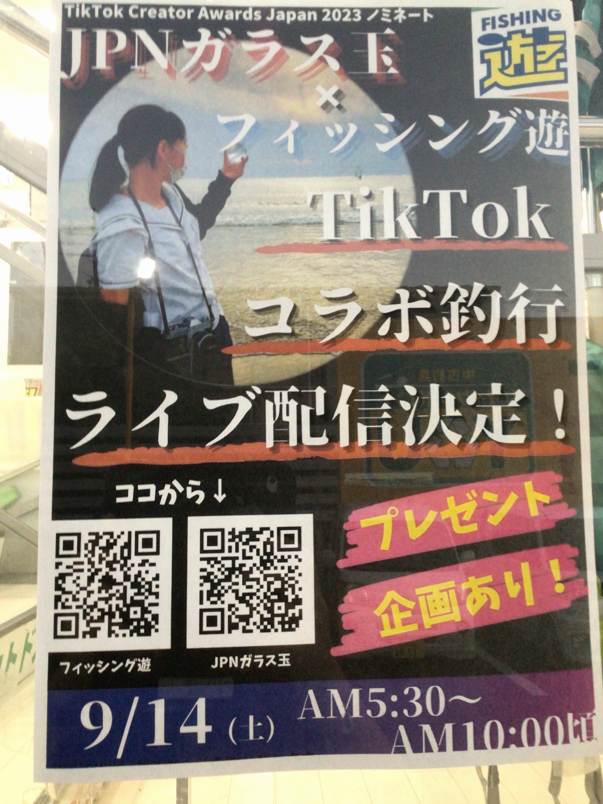 また9/14(土)午前5時半~午前10時頃までJPNガラス玉×フィッシング遊のコラボ釣行のライブ配信が決定しました!!