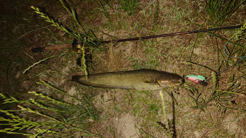 当店スタッフ6月3日に仕事終わりにナマズを狙いに行ってきました、細かいゴミが多く水面に浮いておりジタバグ系ですとその日はルアーがあまり動かなかったのでフロッシュの釣果ではないですが、ポンパドールjrでナマズ5本釣れました。