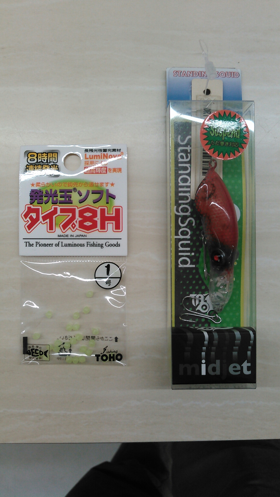 発光玉ソフトを針に2つ着けて(1枚目の写真を参考に)さらにホタルイカ感がUP!