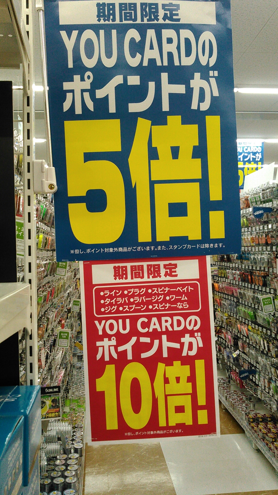 愛知県・静岡県内のフィッシング遊・FLD店舗対象!毎月2と5のつく日(2日・12日・22日・5日・15日・25日)は、ポイントが2倍になります!