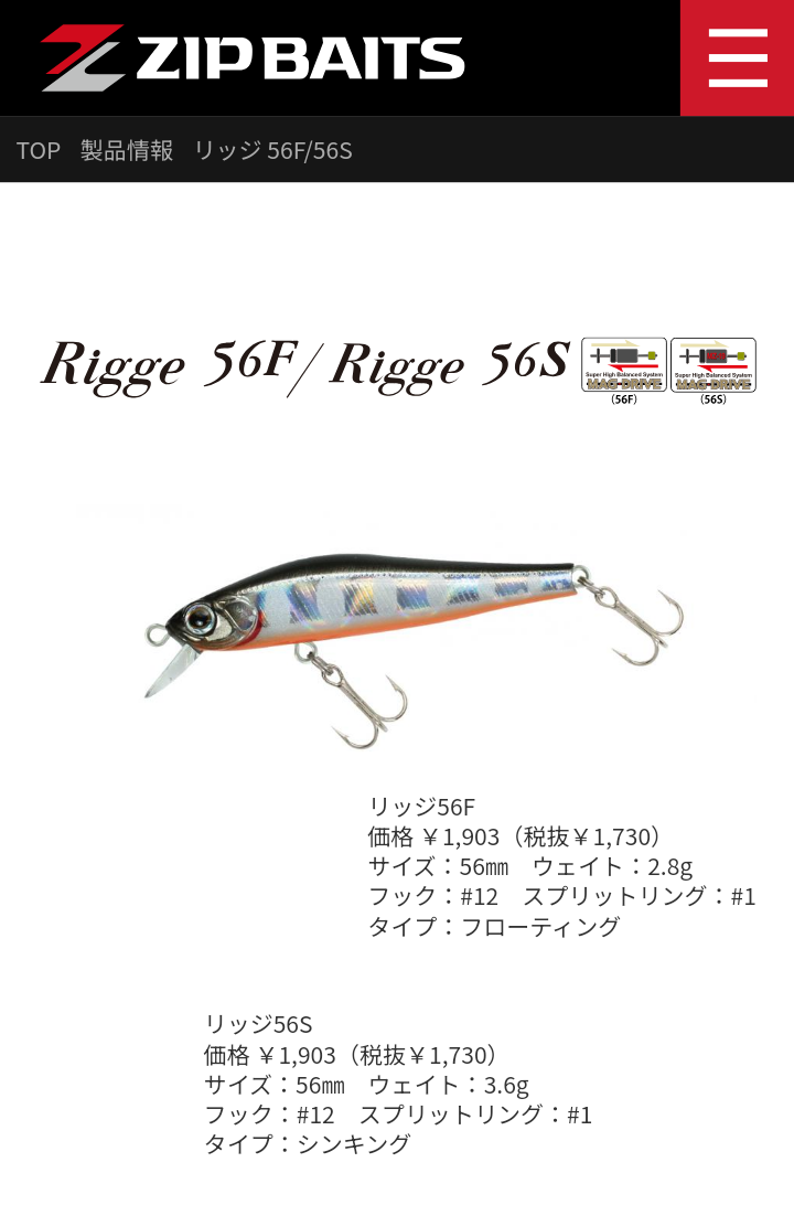 今回はトラウトミノーのジップベイツ:リッジ56S。追いかけてきてるなら活性はないことないでしょ。