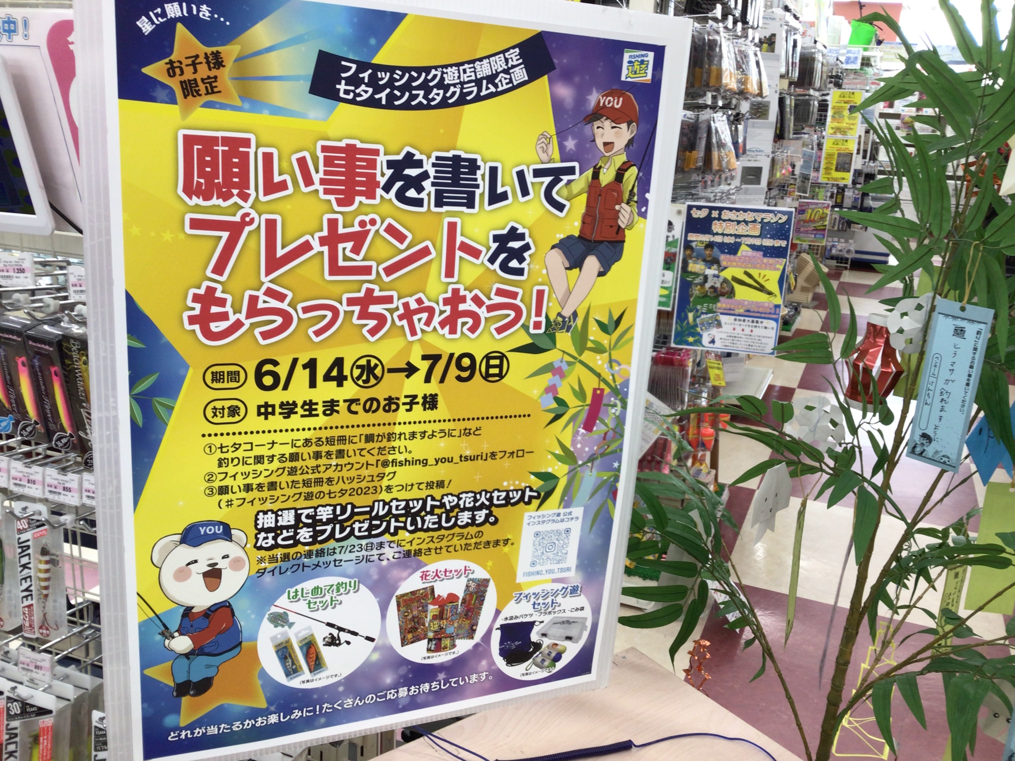 抽選で釣具のセットや花火をプレゼントさせていただきます。