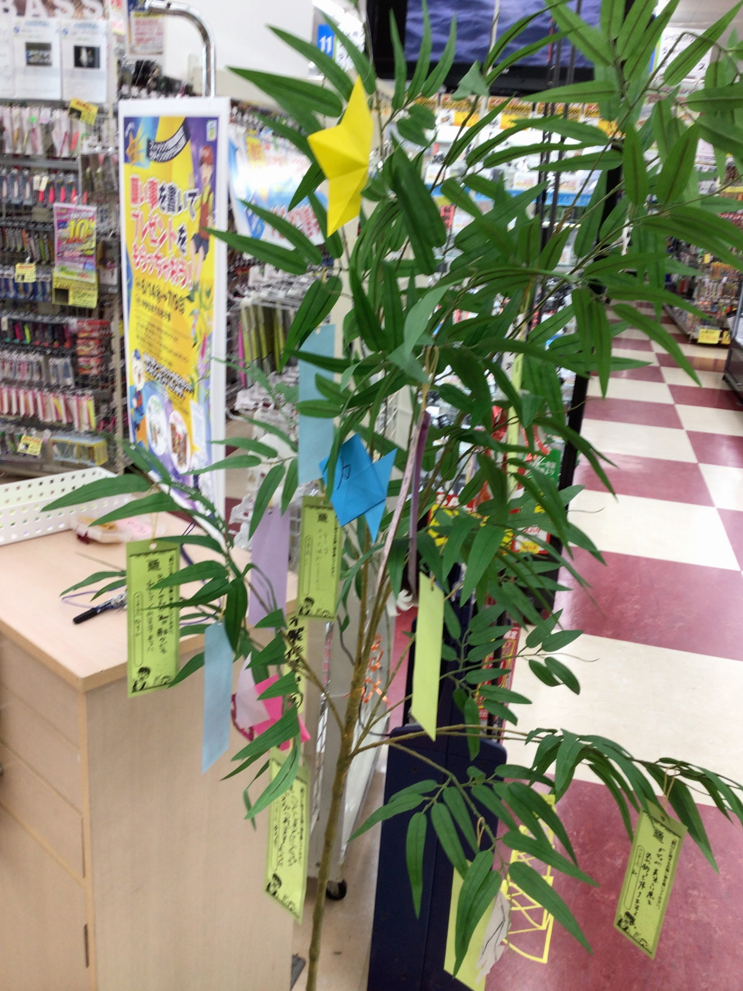 お店で短冊に釣りに関する願い事を書いていただき、