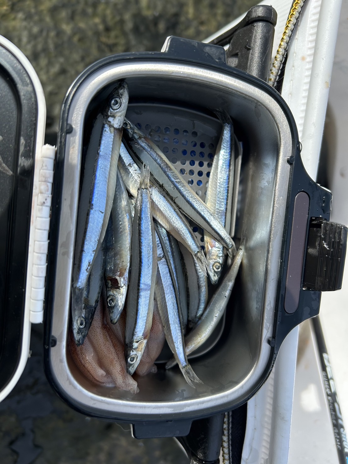 そして、前回の釣行で感じたキビナゴの鮮度が落ちてくると首が折れて針がつけられなくなる問題は保冷が効くタイプのエサ箱で解決できそうです!