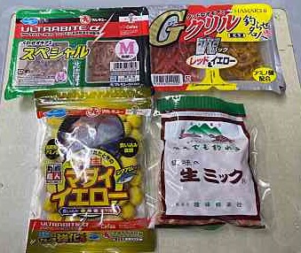 今回使用したエサはマダイイエロー中心に生ミック、オキアミ各種