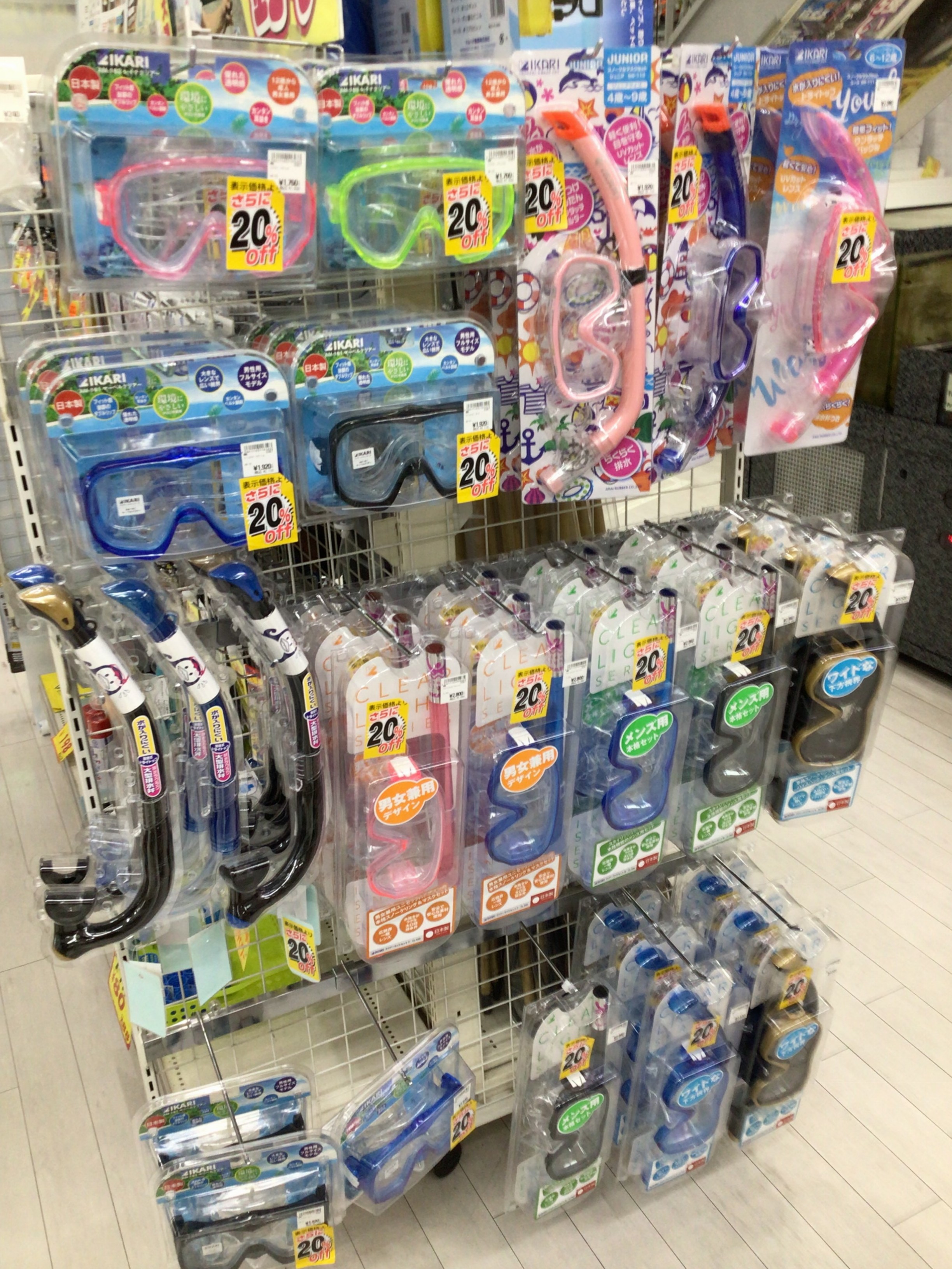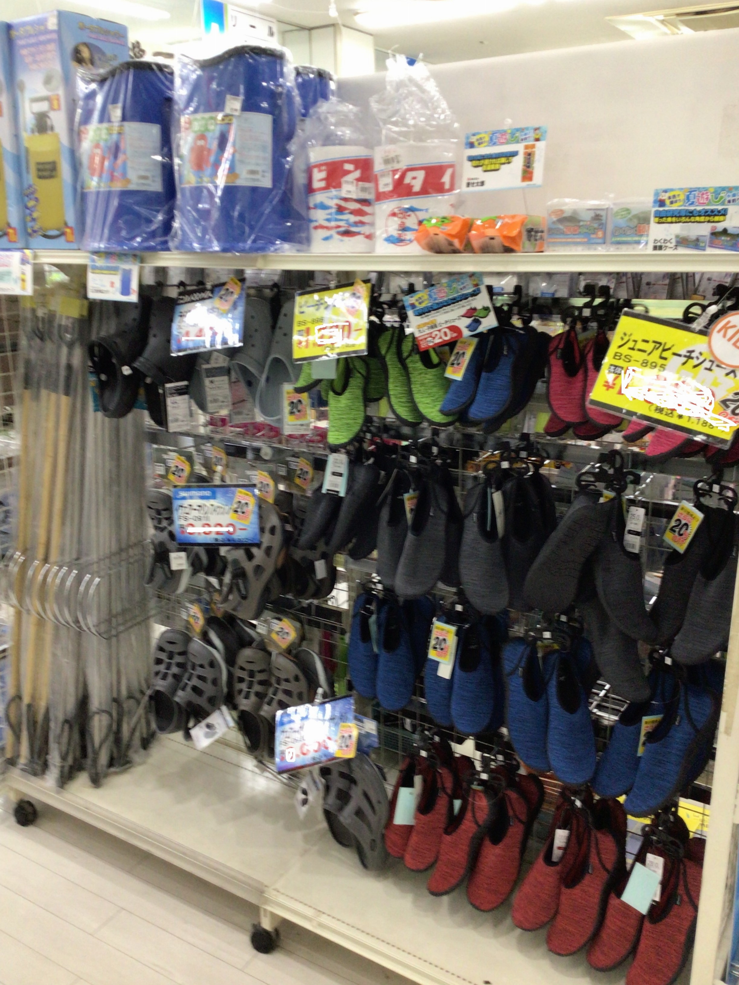 当店では、シュノーケル、ジュニアビーチシューズ、大人用ビーチシューズ