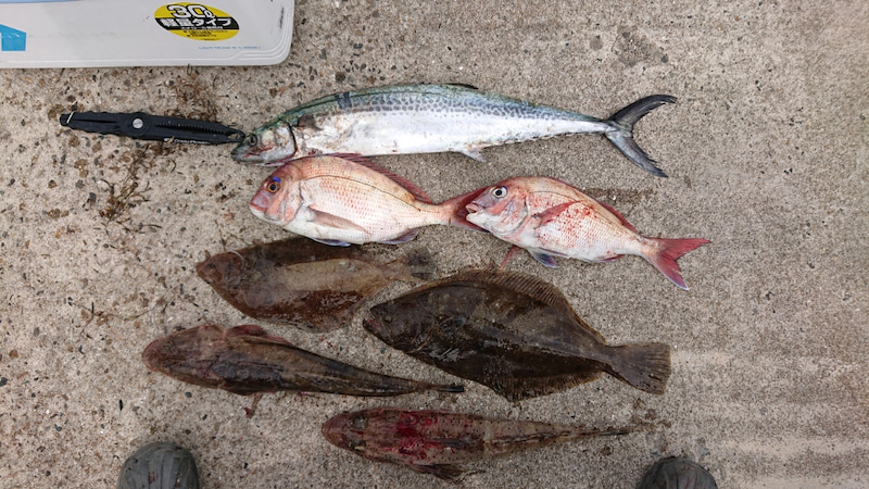 私はタイラバでコチ2匹、マダイ2匹、ヒラメ1匹、カレイ1匹、ジギングでサワラ1匹釣れました!