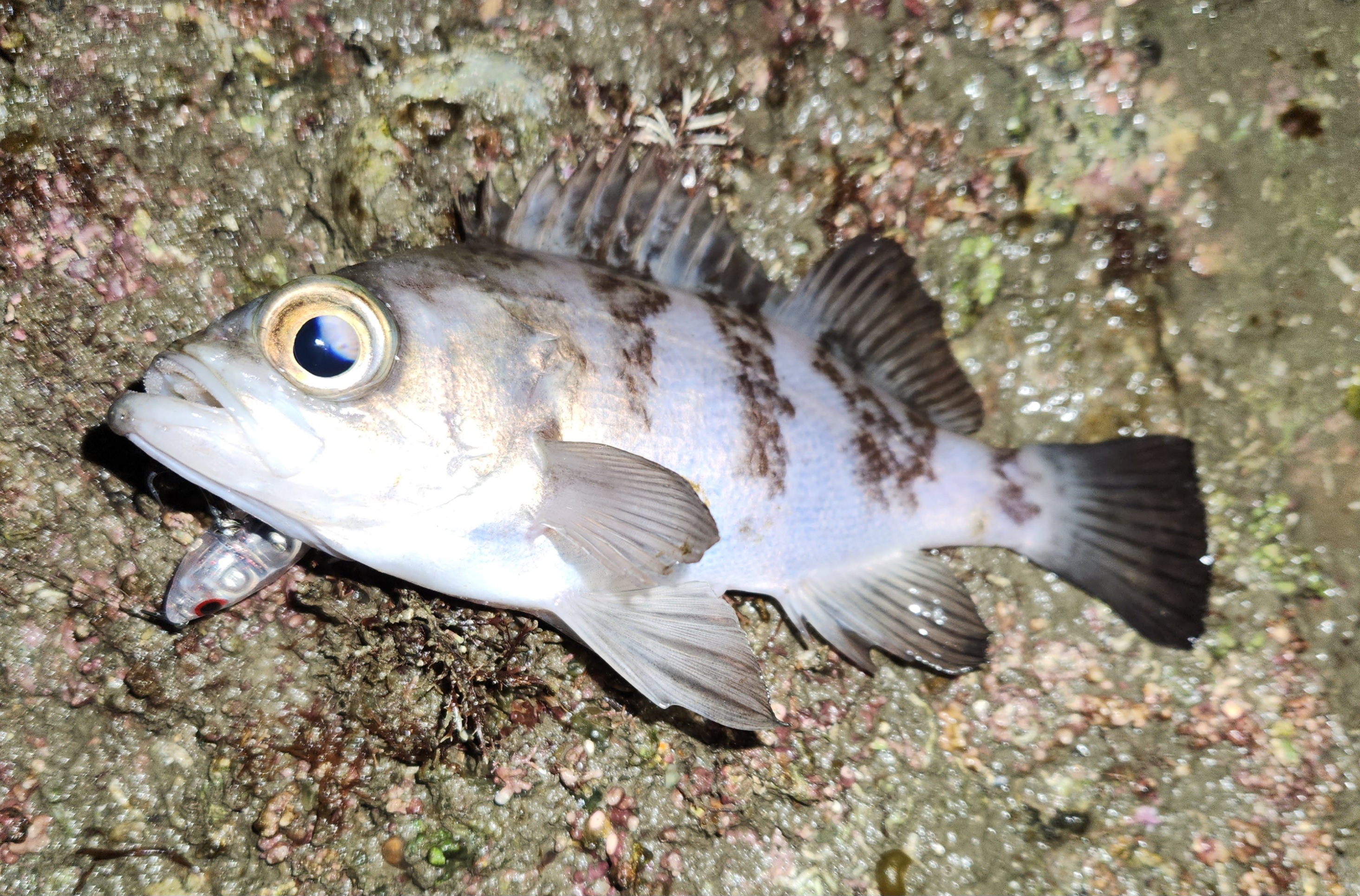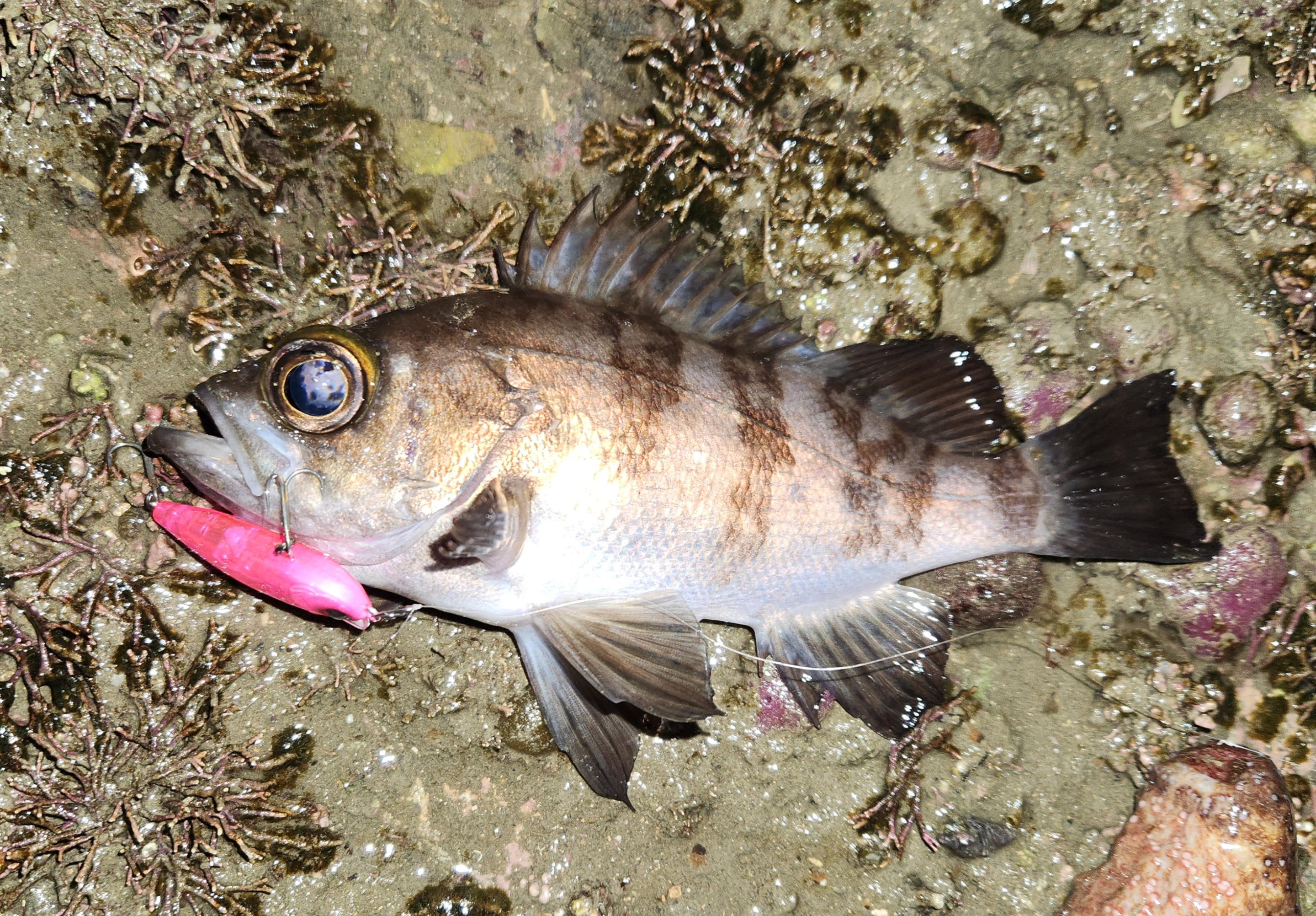 なんと一投目で釣れてしまった!きれいなメバルです。