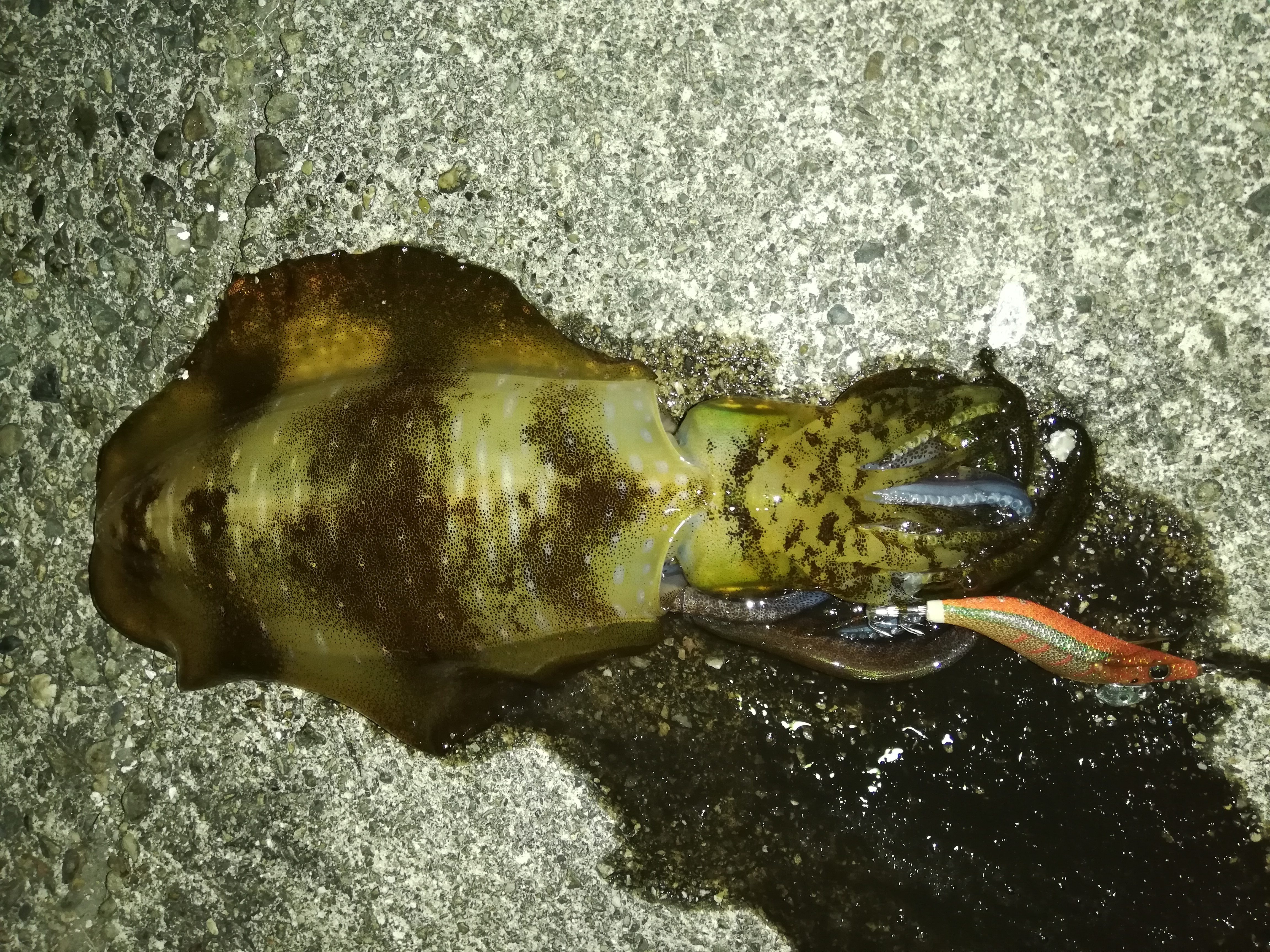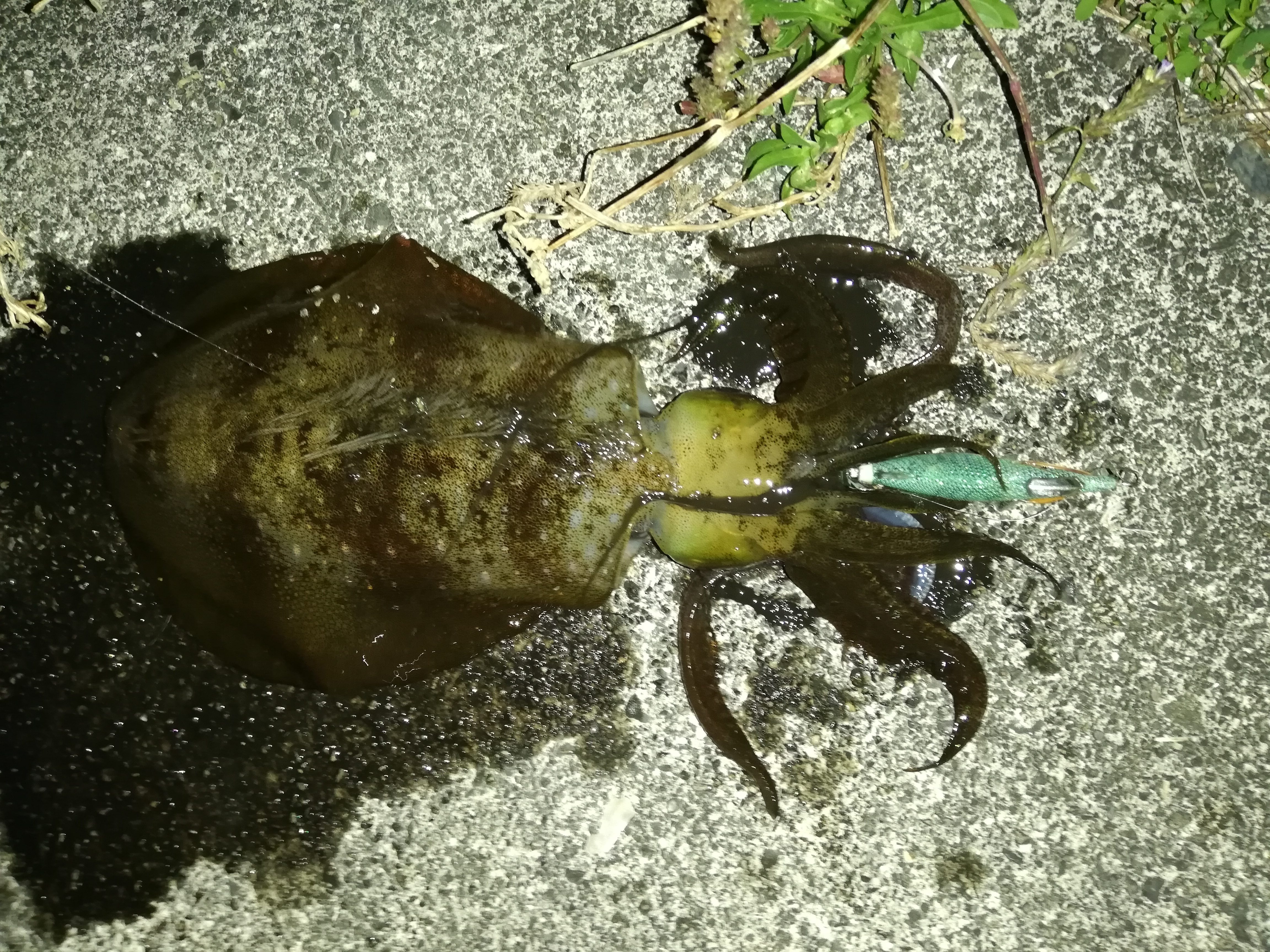 干潮からの上げの潮が効いてきたかなぁと思いながらエギの着底を待っているとなかなか着底しない…