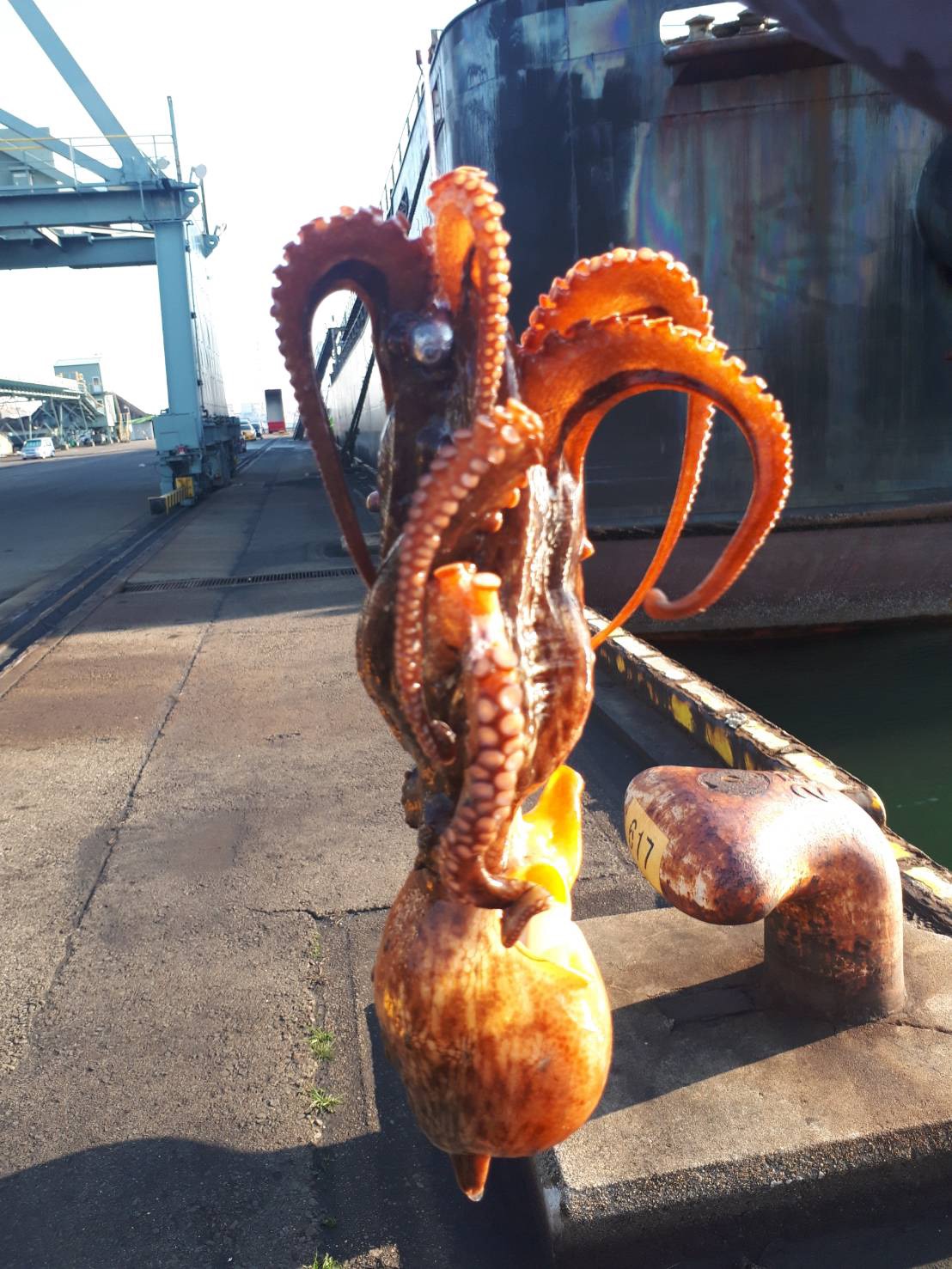 四日市港や霞や沖の一文字にてタコがあがっています。