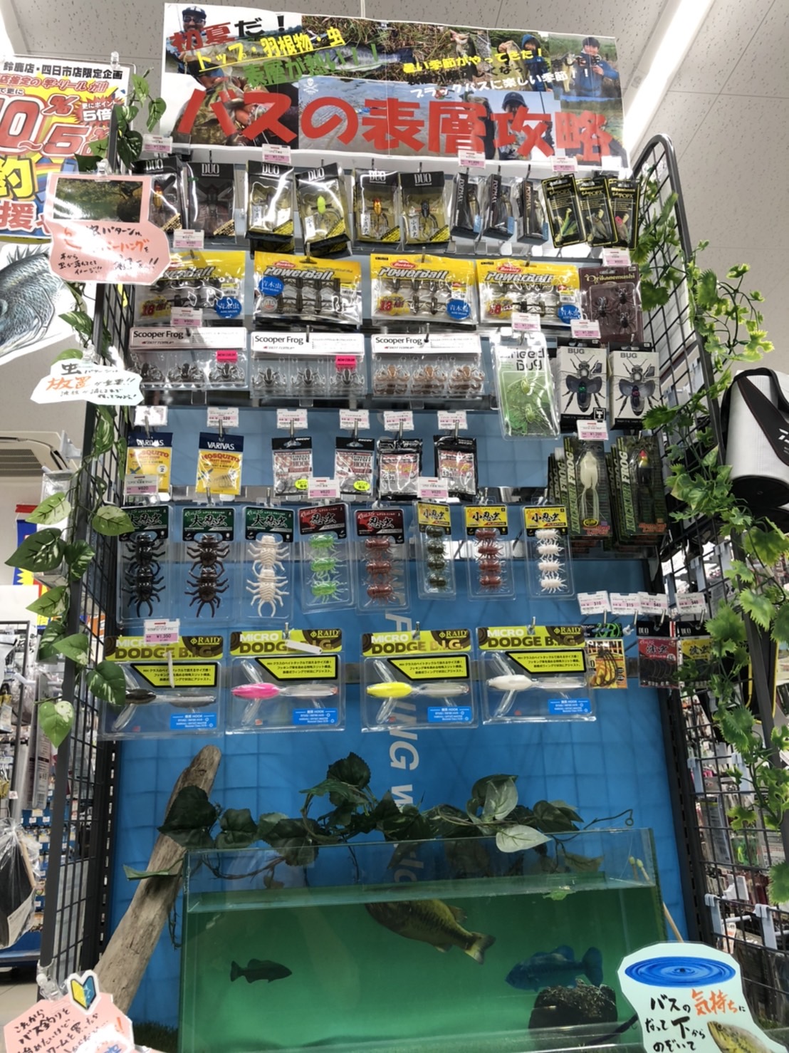 虫ワームをちょんちょんできる水槽もご用意したので是非バスの気持ちになって下から覗いてみてください!!