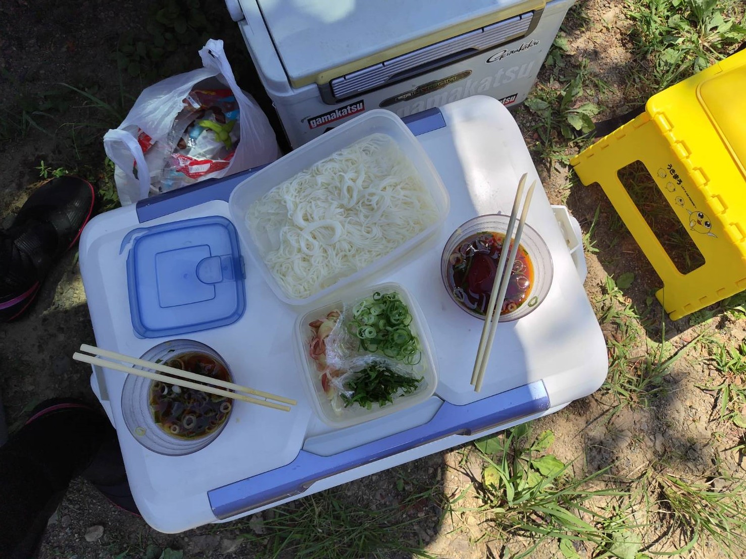 この季節ですと夏の冷奴などはそれはもう美味^^(。スイカやゼリーなんかも時々持参します^o^v・・・クーラーボックス大活躍です。