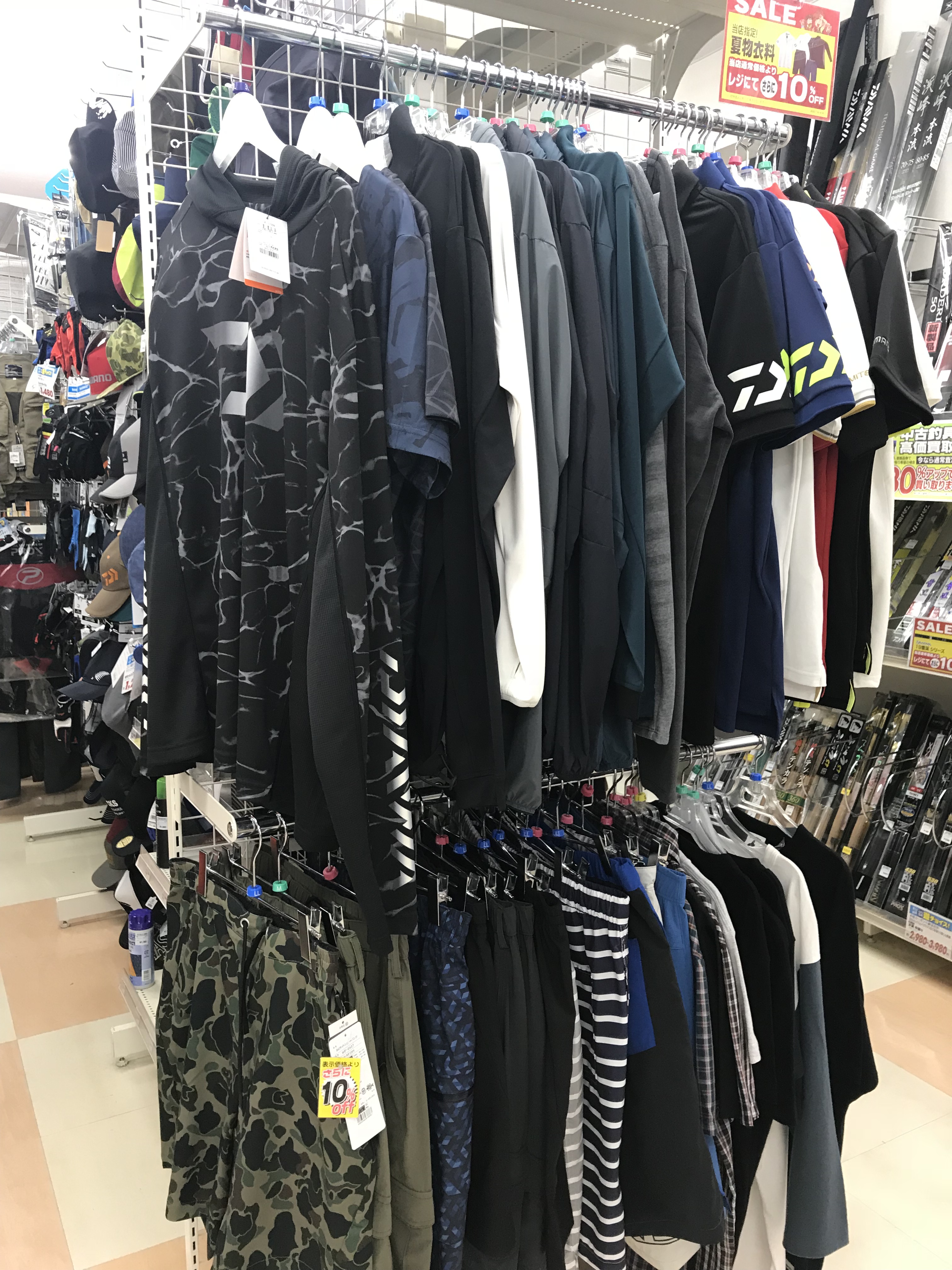 現在フィッシング遊では夏物衣料品をお買い得価格で販売中です。