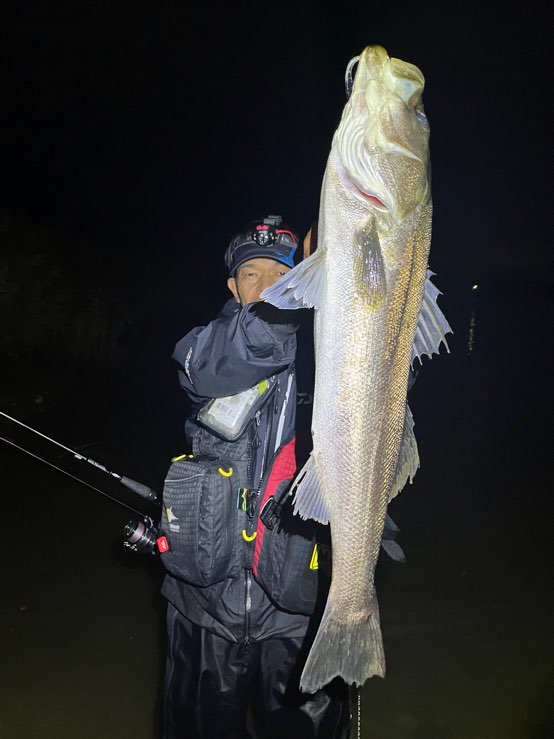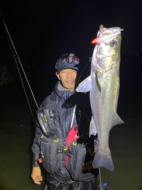 アワセを入れるとまぁまぁロッドが絞り込まれる⁉️良い型だと思い走られまくる前に強引に寄せてキャッチしたのは75cmのシーバス。
