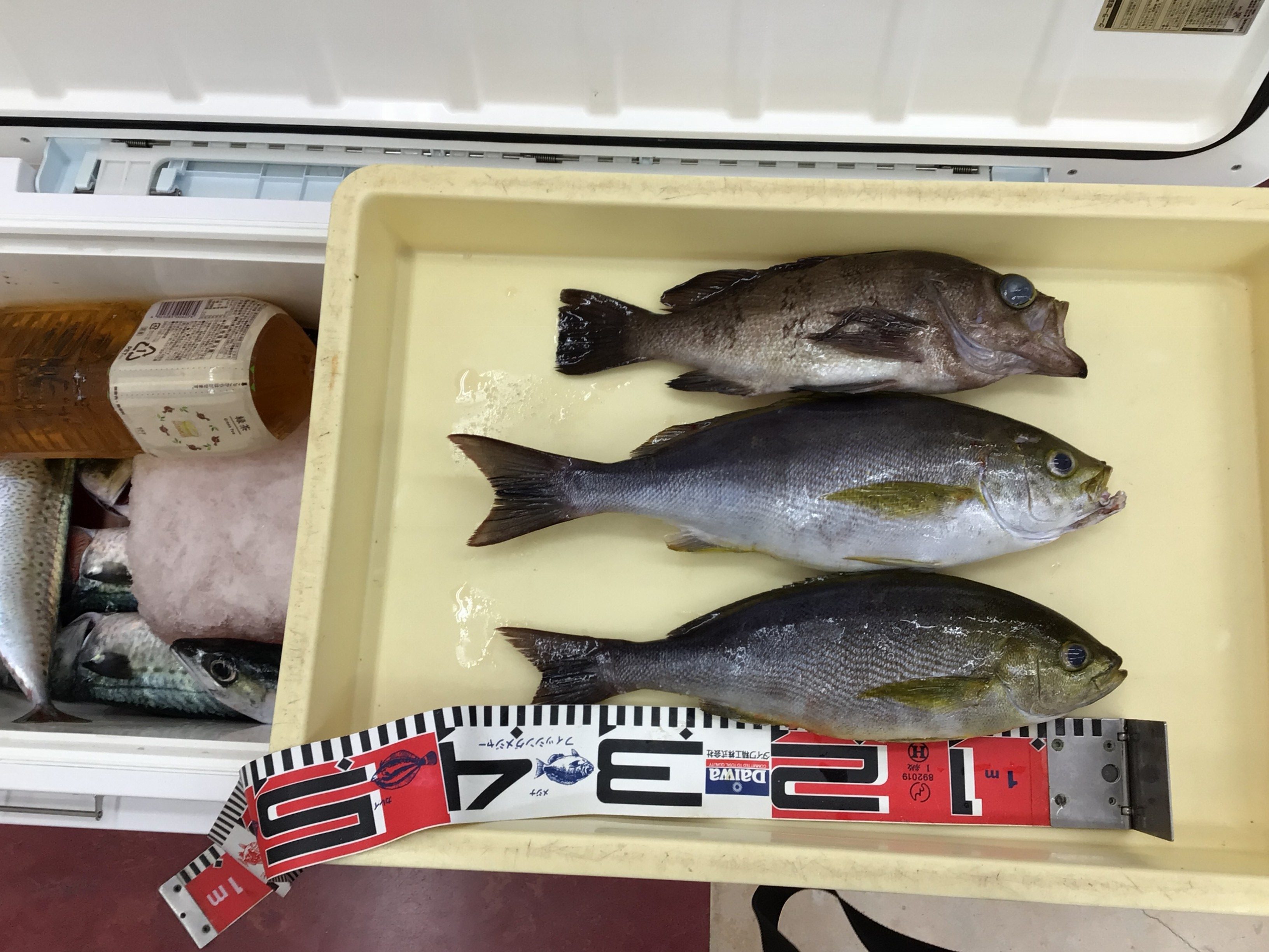 本日お客様から大物賞の魚をお持ち込み頂きました!船宿 七福丸にてイサキ釣りに行かれた、お客様40cmUPのイサキと30cmUPのメバルをお持ち頂けました。W大物賞おめでとうございます!その他に丸々太ったサバも釣れたそうです。