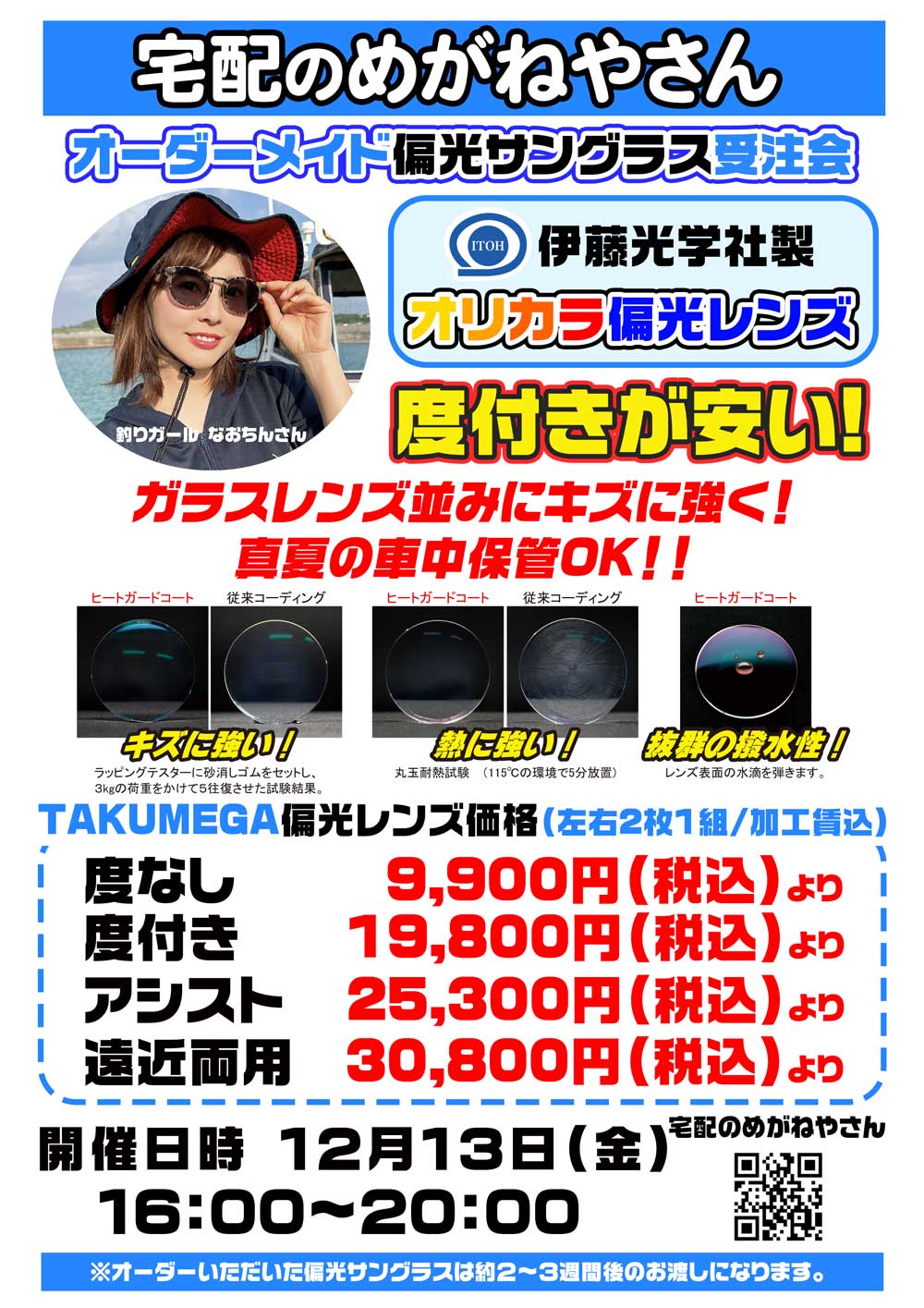 さて、12月13日金曜日16-20時にて宅配のめがね屋さん受注受注会開催!