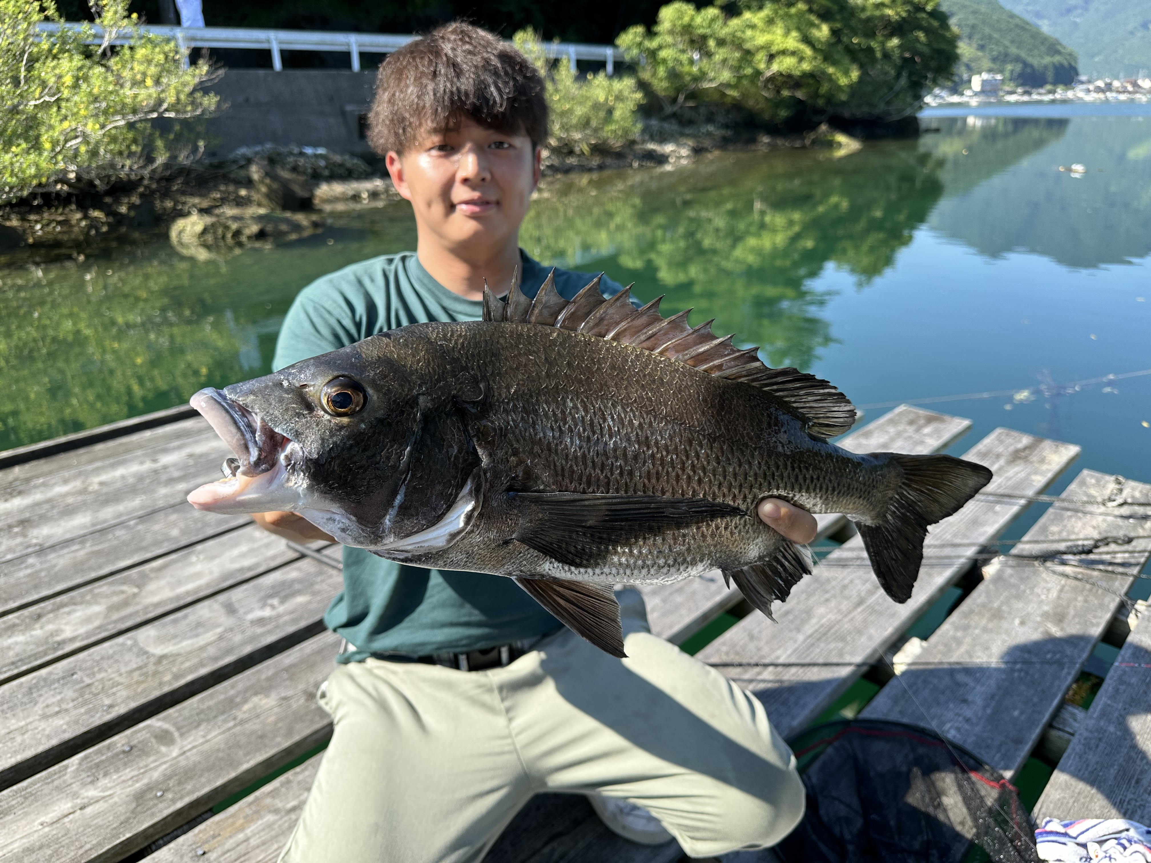 2024.07.23ロッジ山水様にお世話になり夏の灼熱の筏釣りに行ってきました!!5時出船で空気が透き通っており気持ちがいい!!さっそく筏について準備を始めて釣り開始!!中層付近にはいいサイズのグレの群れ!底まで落とししばらくするとダンゴあたり!!ダンゴが割れて突くあたりを我慢し待っていると水面に突き刺さる大きなあたり押さえ込まれてから合わせるとヒット!ズッシリと重みがあるナイスファイトで筏の下から顔を出したのは対抗ある立派な年なしチヌ!!