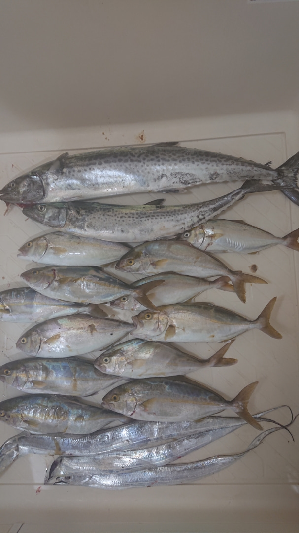 その後はタチウオも狙いました、自分はジャッカルのアンチョビメタルタイプⅡ120g~160gで指2本~3本半のサイズを6本釣れました。自分はシルバーを使っていましたが自分より釣っている人はムラサキやムラサキゼブラグローのカラーで良く当たっている様でした。