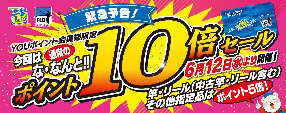 三重県内のフィッシング遊・FLD店舗対象!毎月2のつく日(2日・12日・22日)は、ポイントが2倍になります!