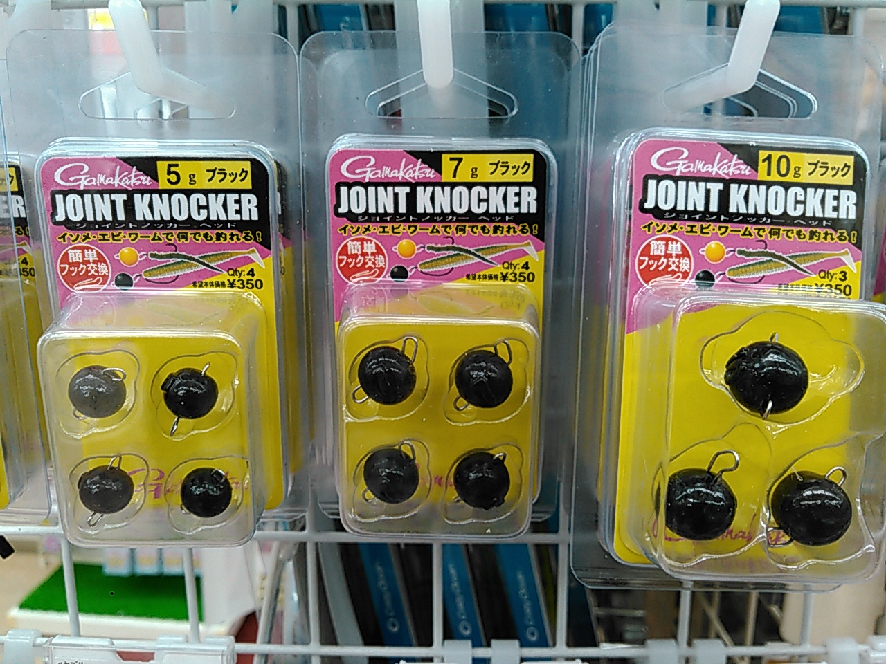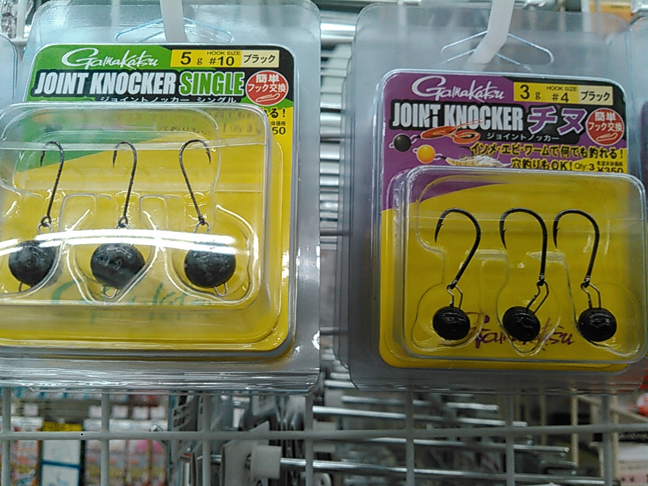 がまかつの新製品 ジョイントノッカーも入荷しております、自分の好みのフックを取り付けて使える新製品です、シンカーのみのタイプとフックが付いているタイプの両方入荷しております!好みのフックを取り付けて、ワーム~エサ釣りまで幅広く使用出来るのでオススメです!