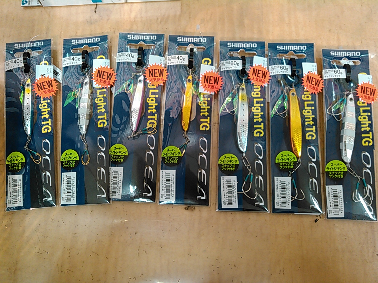 シマノから発売された、ガトリンライトTGも入荷しました、スーパーライトジギングに最適なタングステンメタルジグです重さは40gと60gの入荷です、最初からSLJに適したフックが装備されているので買って直ぐ使用可能です!