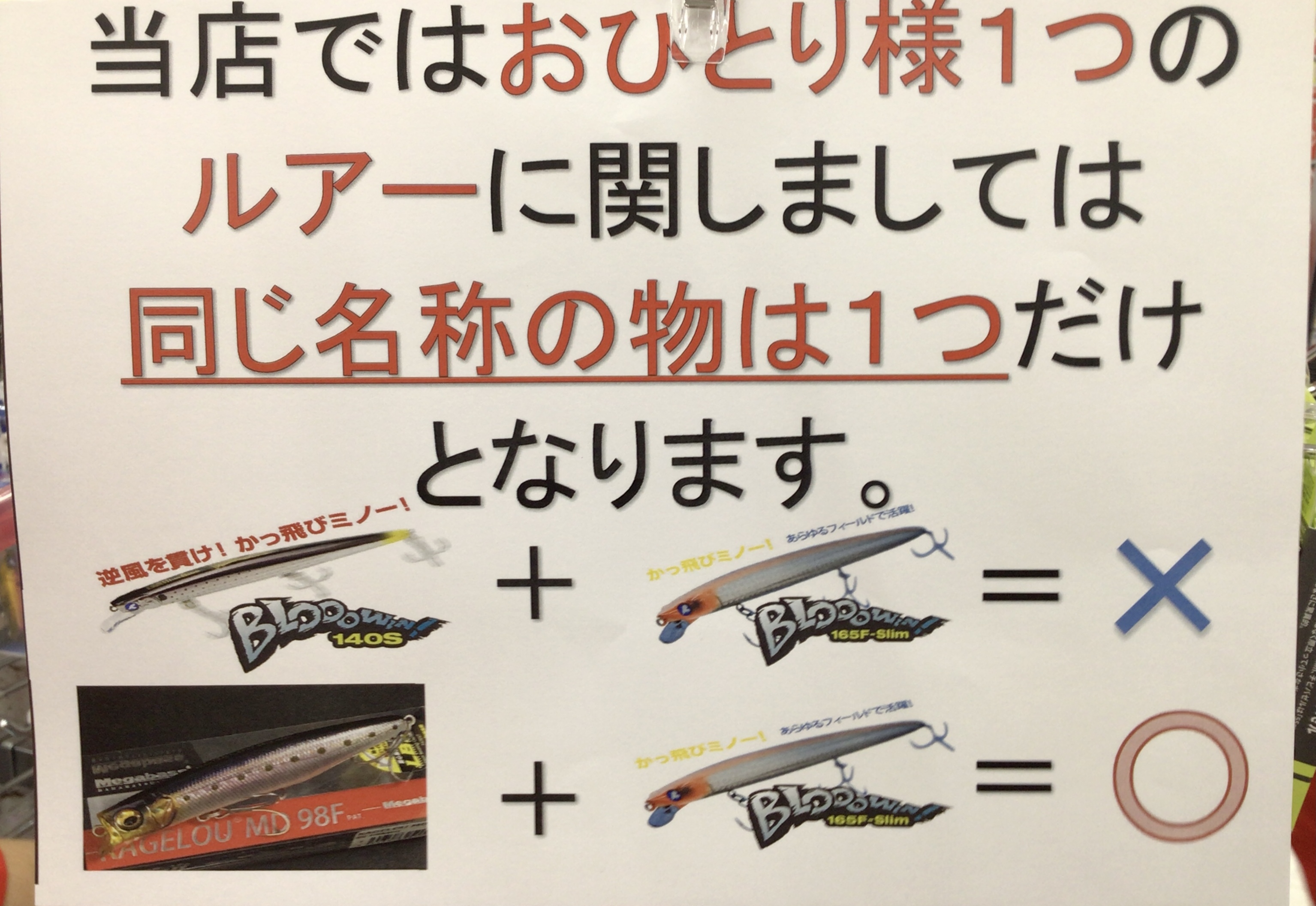 並んで頂いている方から、順番にスタッフが誘導いたします。申し訳ございませんが、人気ルアー以外ご購入のお客様もトラブル防止の為お並び頂きますのでご了承下さい。