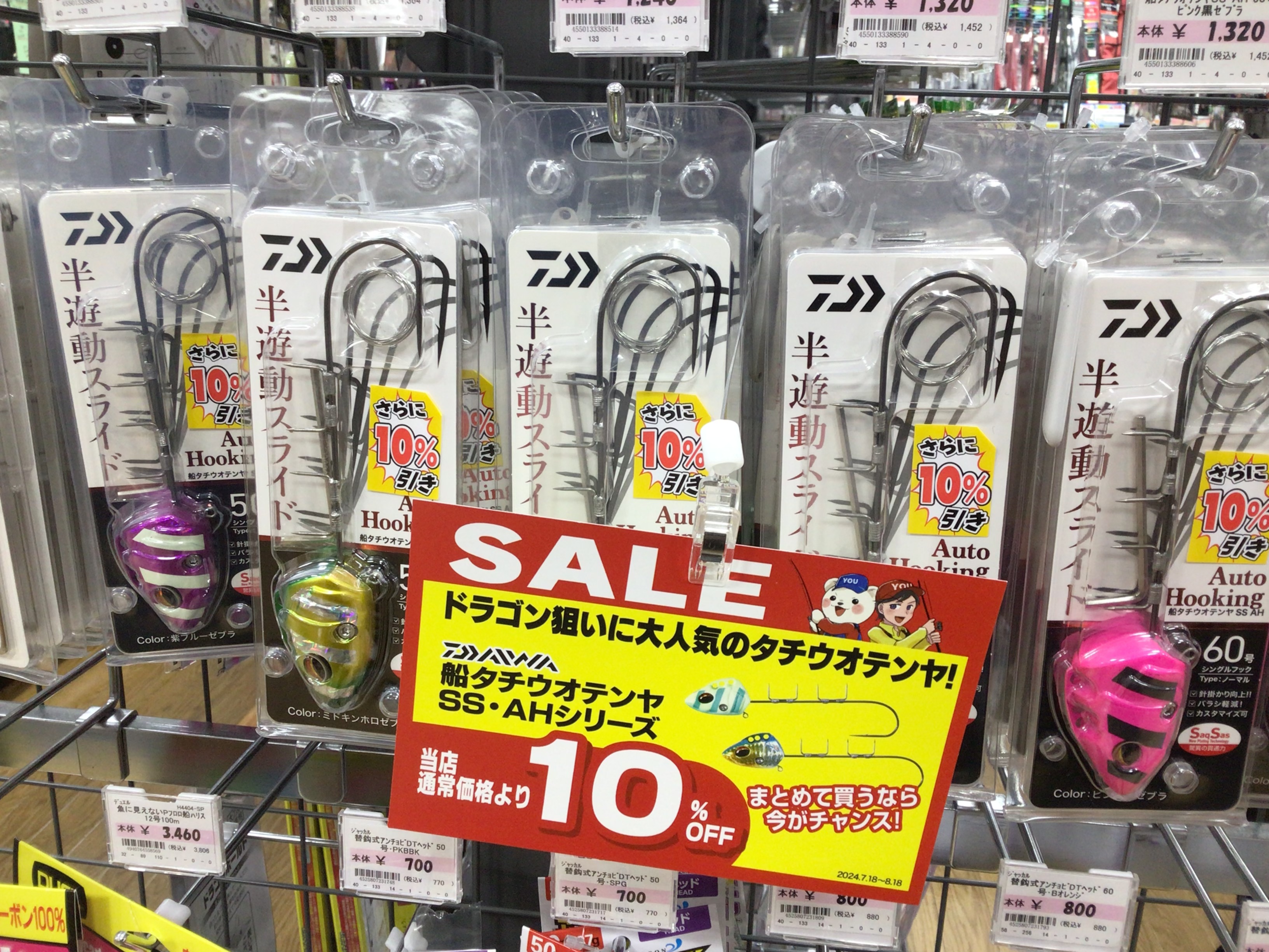 只今ビッグサマーセール中で去年のダイワの新製品テンヤが表示価格から更に10%引きとなっております✨