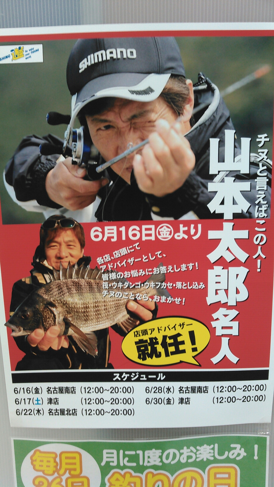 明日はチヌ太郎こと、山本太郎さんによります店頭アドバイザー北店初出勤日です❗